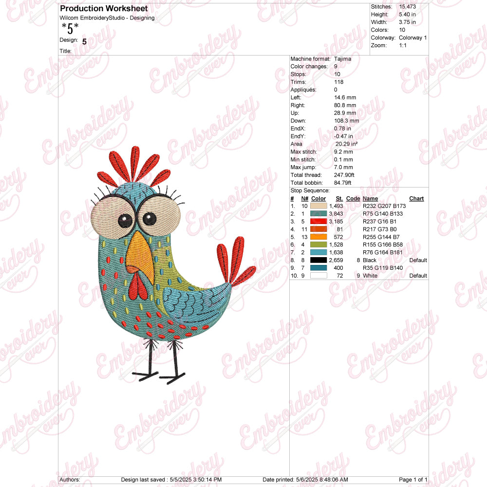 This Funny Crazy Chicken Embroidery Design captures a whimsical and lively character, perfect for adding a touch of humor and personality to your embroidery projects. Detailed with expressive features and quirky posture, it brings an animated look to fabric surfaces. Ideal for decorating casual apparel, kitchen linens, or tote bags, this design offers playful charm that engages both children and adults. Crafted with precise stitching paths, it ensures smooth application on various materials while maintaining durability and vivid detail. Whether used to create unique gifts or enhance your own collection, this design stands out by combining expert artistry with fun, making every piece memorable and full of character.