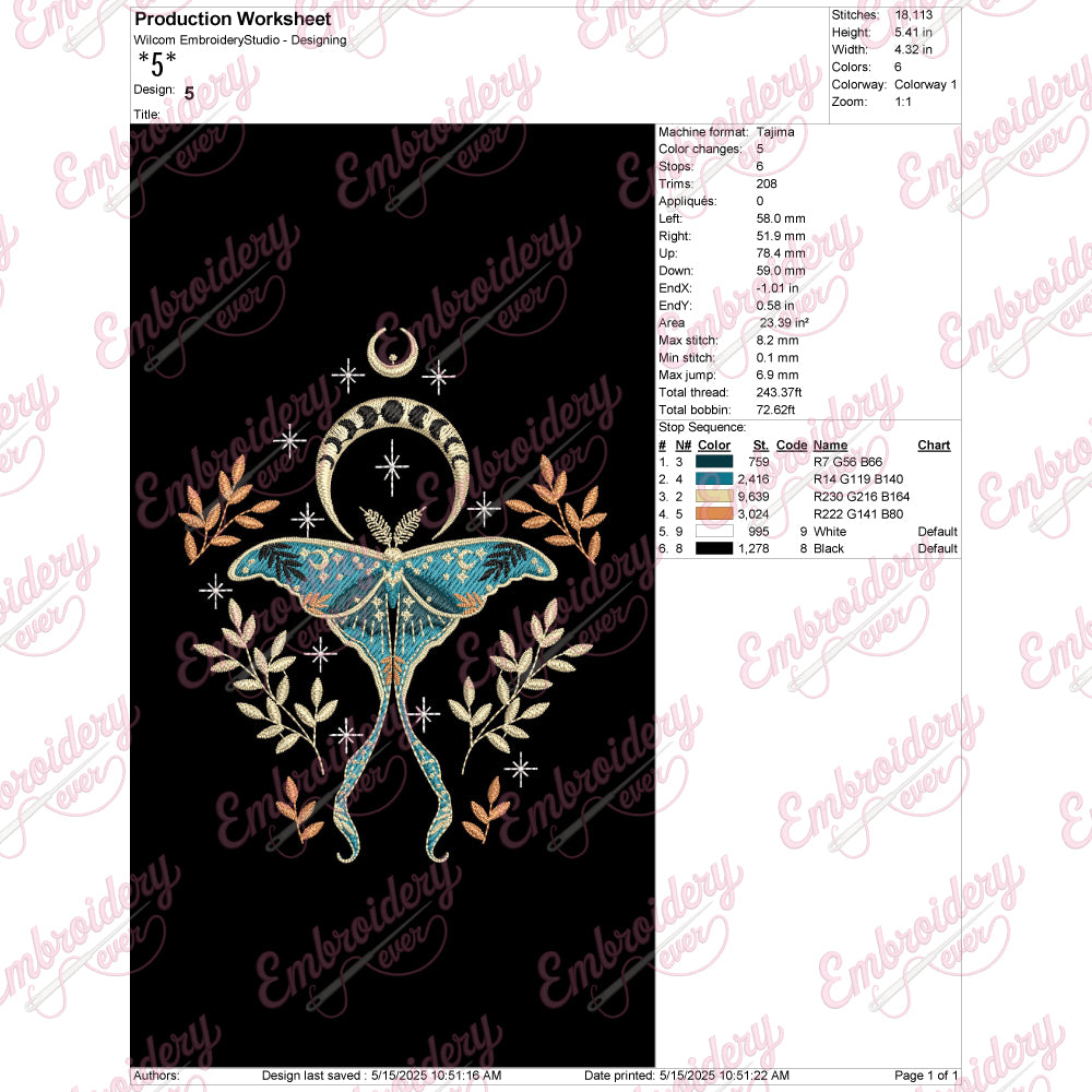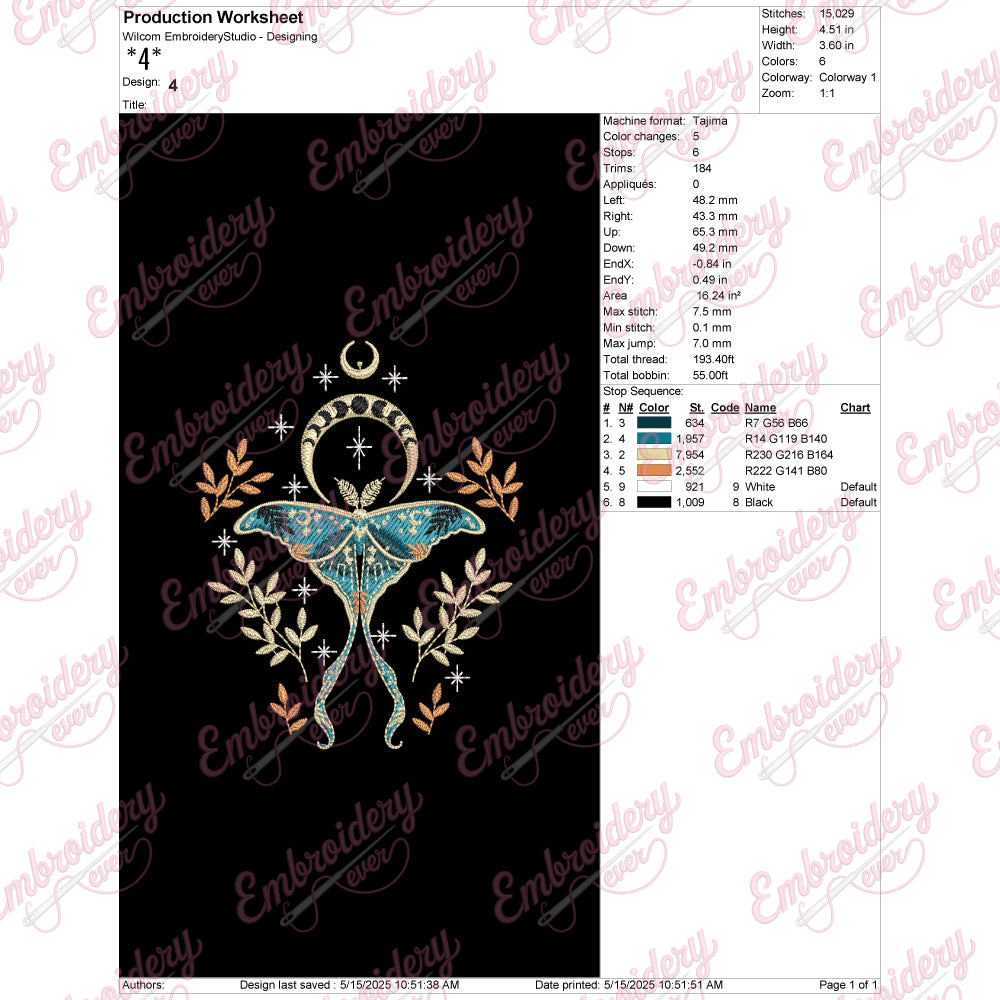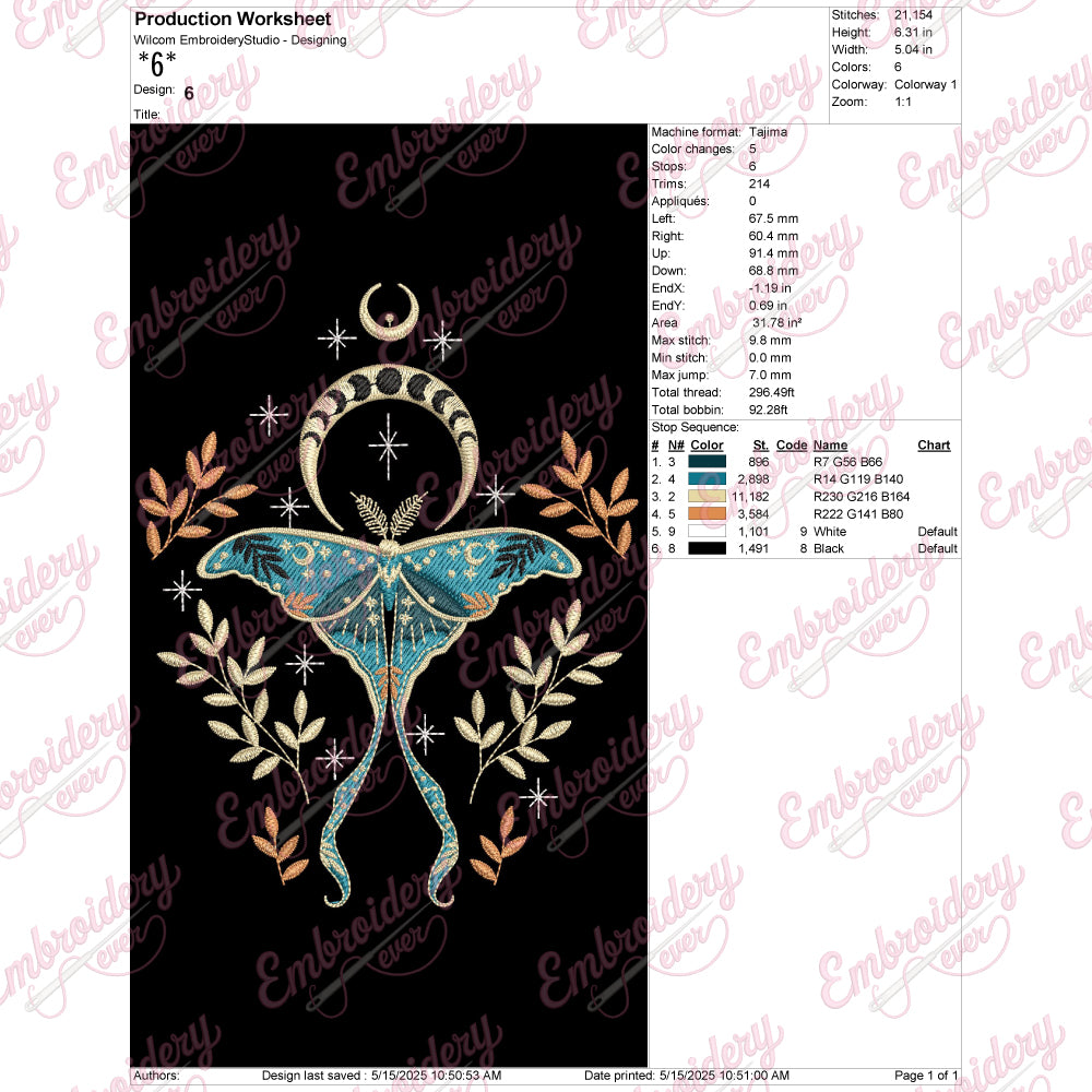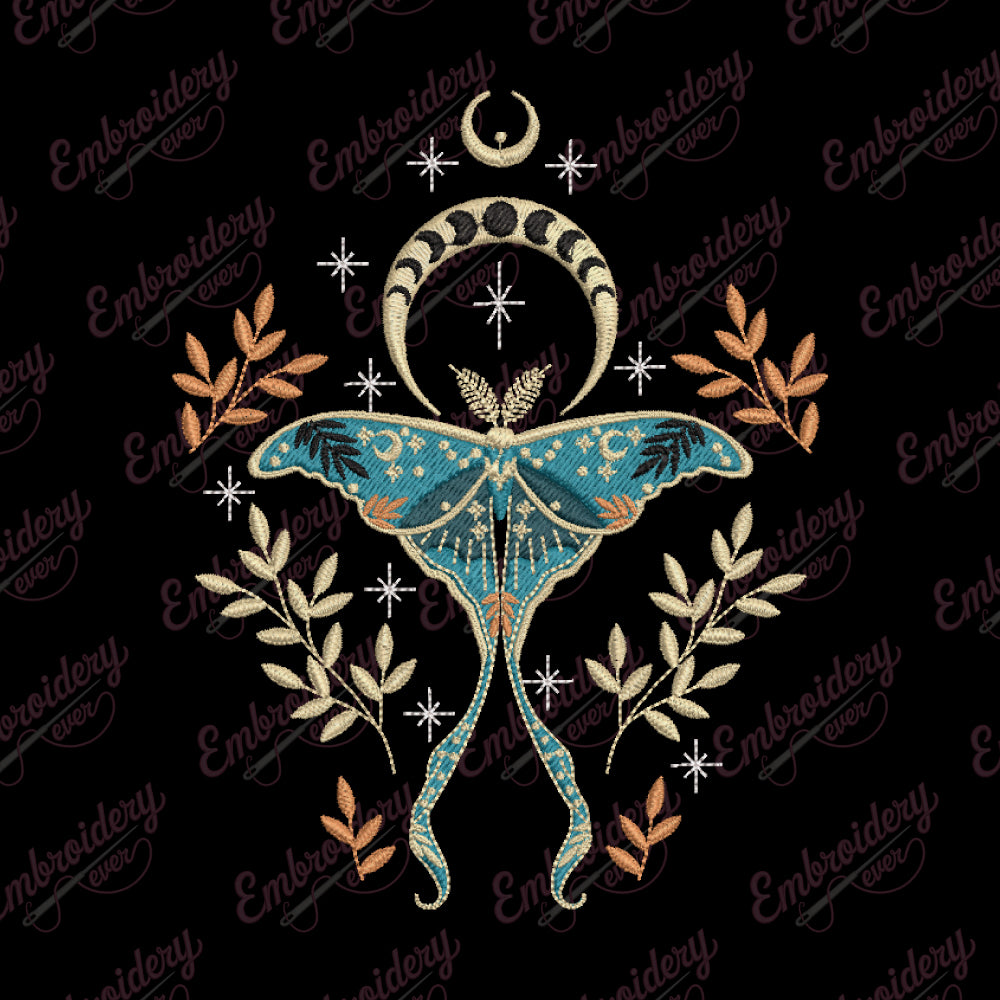 Let your creativity shine with this delightful Mystical Moth and Moon Phases embroidery design!