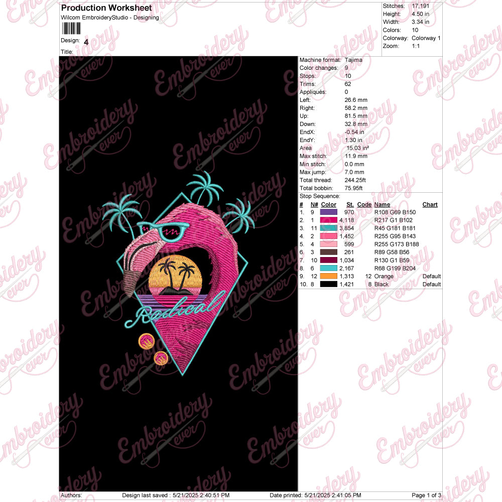The Radical Summer Flamingo Embroidery Design showcases a vibrant and dynamic interpretation of the iconic flamingo, expertly crafted for embroidery enthusiasts seeking a bold statement piece. This design features precise stitch detailing that brings the flamingo’s graceful curves and plumage to life with vivid color transitions and sharp contrasts, creating a striking visual impact. Ideal for summer-themed apparel or accessories, it enhances fabric surfaces with durability and texture, maintaining integrity through multiple washes. Suitable for advanced embroidery machines and skilled crafters, this design allows for customization in size and thread choices, enabling personalized projects perfect for seasonal collections or creative showcases.