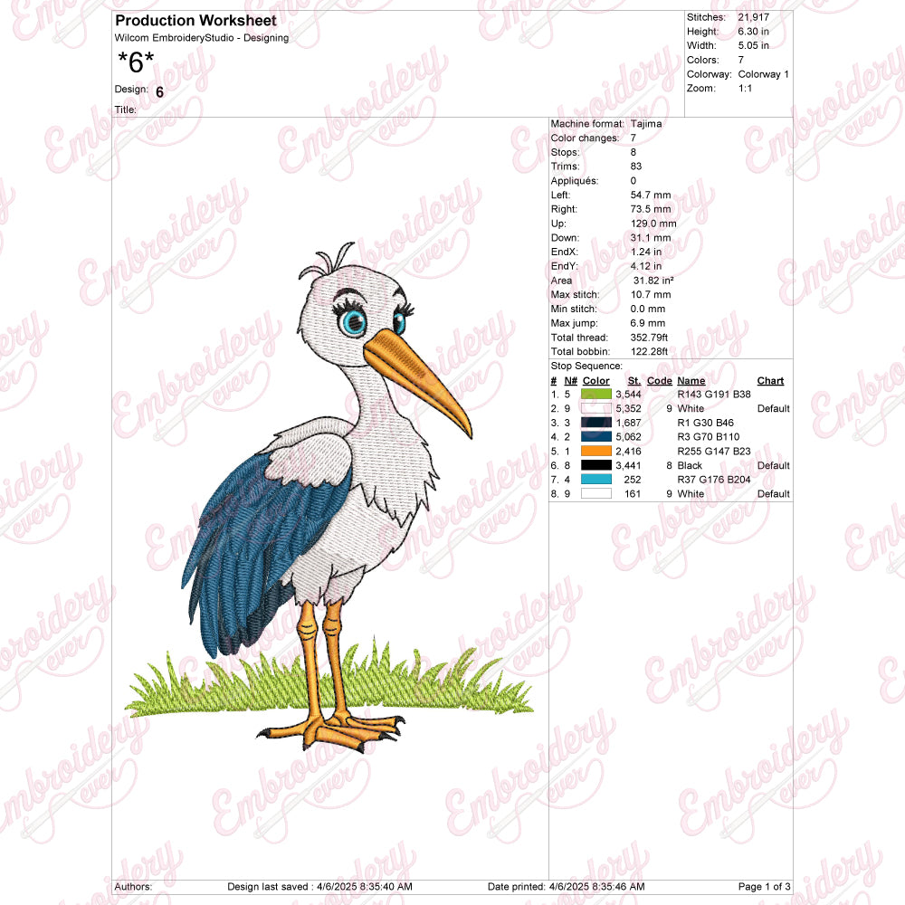 Let your creativity shine with this delightful Stork Bird embroidery design!
