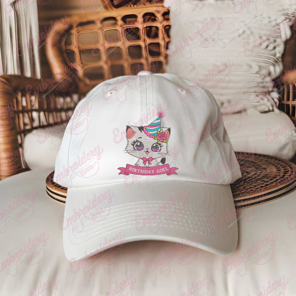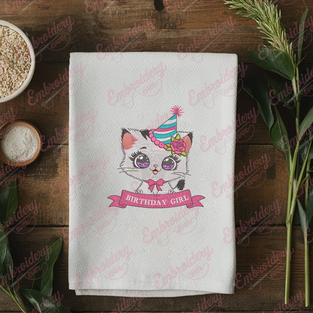 Birthday Girl Kitten Digital Download Machine Embroidery Design
