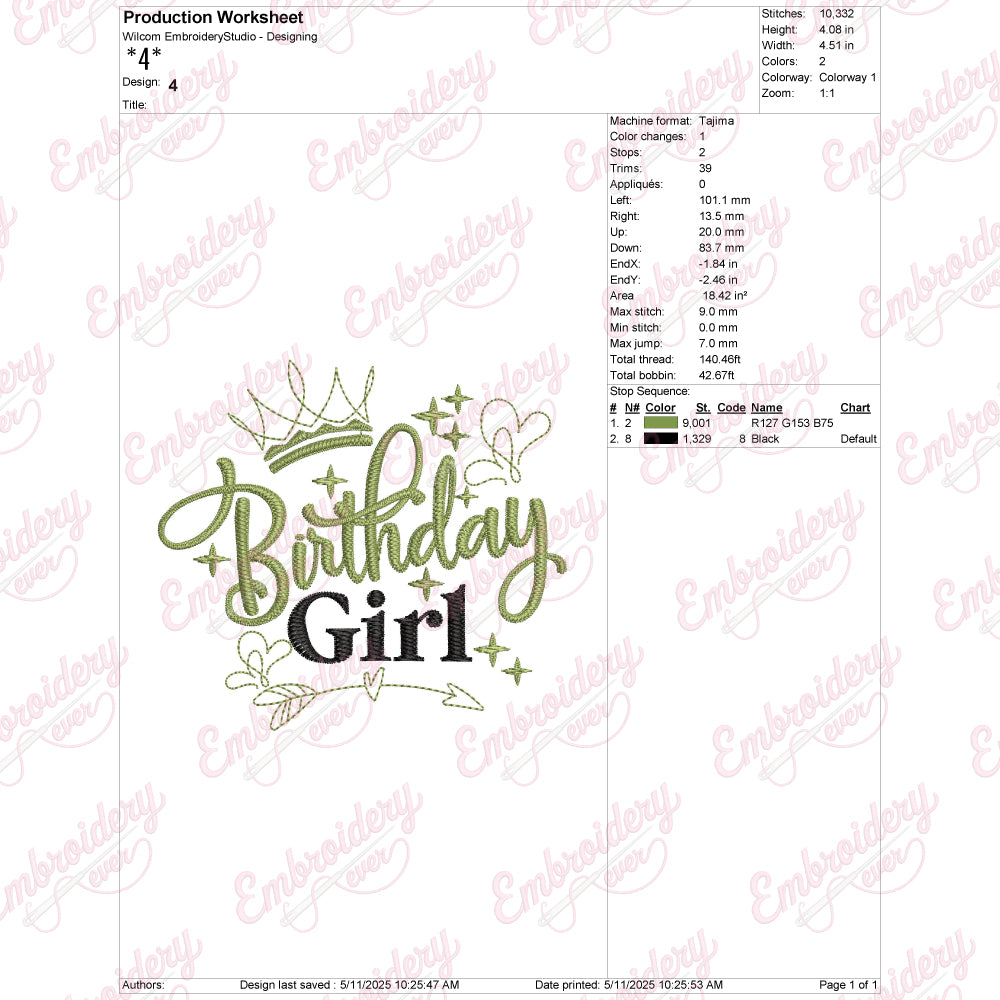 Let your creativity shine with this delightful Birthday Girl embroidery design!