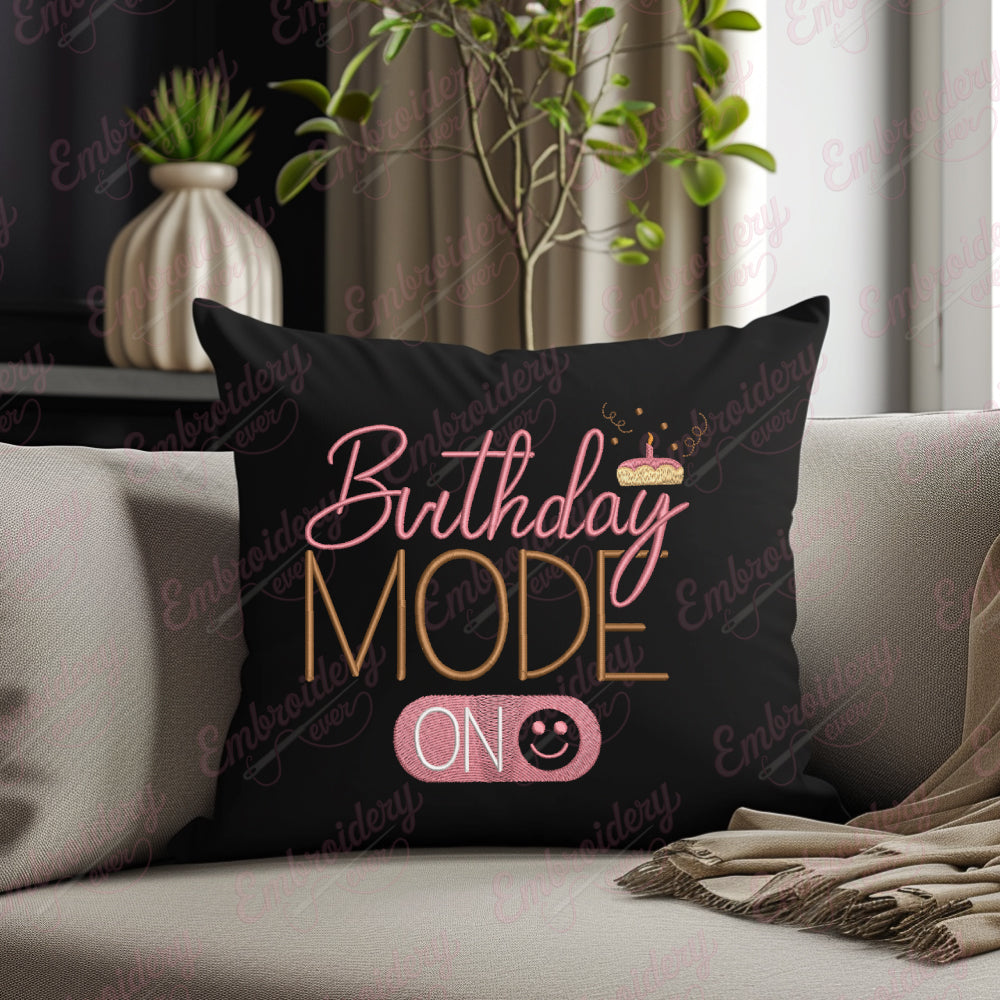 Let your creativity shine with this delightful Birthday Mode On embroidery design!