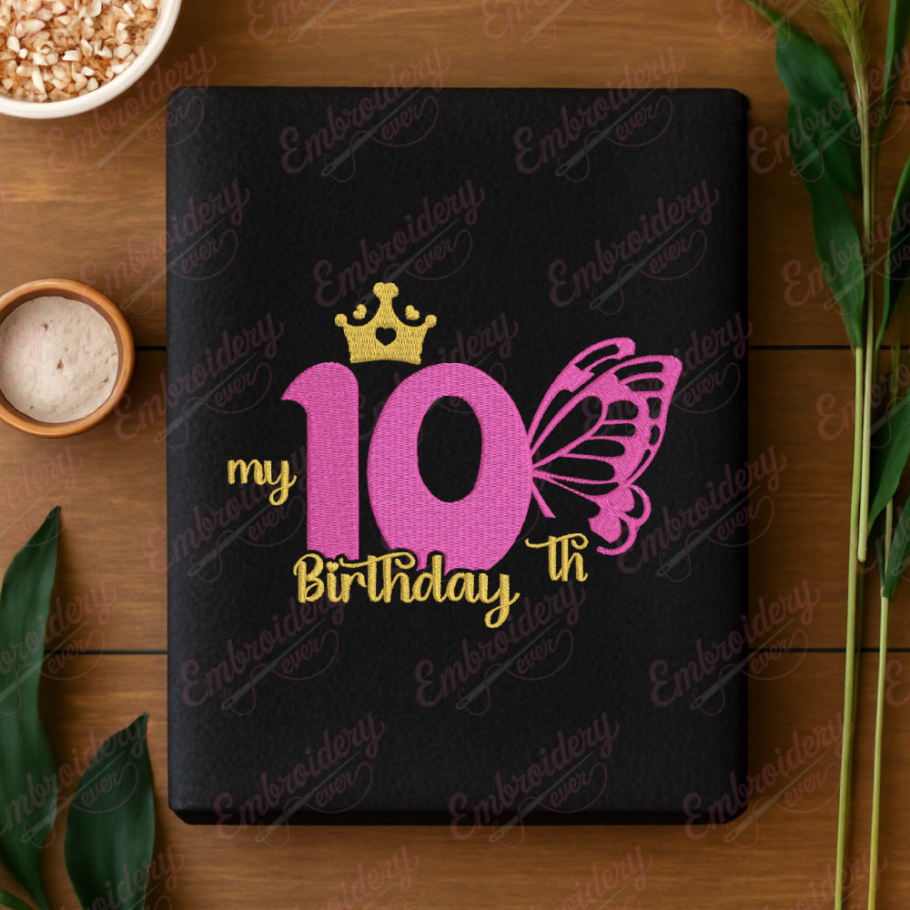 Let your creativity shine with this delightful 10th Birthday embroidery design!