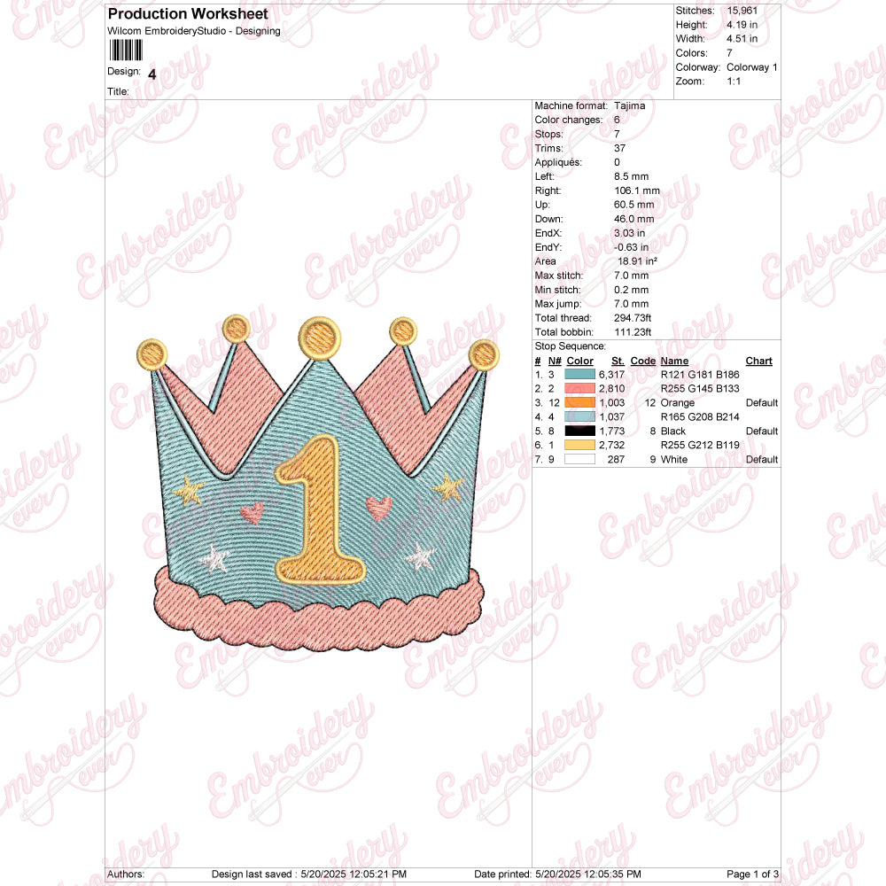 Celebrate a special first birthday with the One Birthday Crown Embroidery Design. This expertly crafted pattern features a charming crown motif perfect for adding a personalized touch to baby clothes, gifts, or party decor. Its detailed stitching ensures a refined, professional look that enhances any fabric. Ideal for experienced embroiderers seeking to create memorable keepsakes for that milestone occasion.