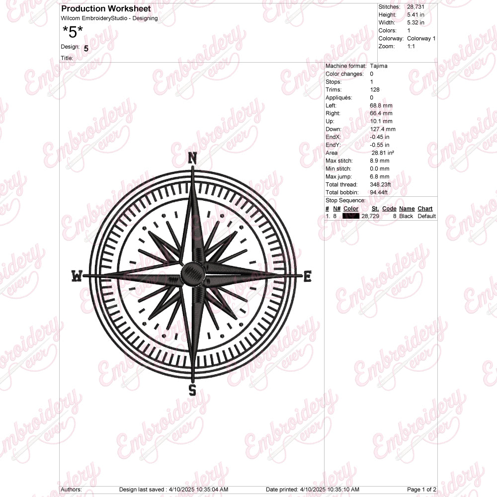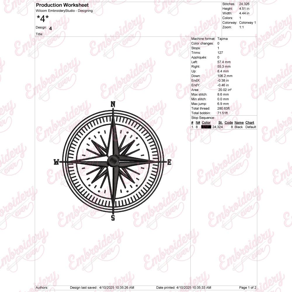 The Compass Rose Embroidery Design is a meticulously crafted pattern that captures the timeless elegance and navigational symbolism of the classic compass rose. Ideal for enhancing garments, accessories, or home textiles, this design features precise lines and balanced symmetry, reflecting expert craftsmanship. Its intricate details allow for a striking visual impact, making it perfect for those seeking to add a touch of sophistication and direction-inspired artistry to their projects. Whether used on jackets, bags, or decorative linens, the Compass Rose design offers durability and style, elevating any fabric with a refined, nautical-inspired motif that resonates with both tradition and modern aesthetics.