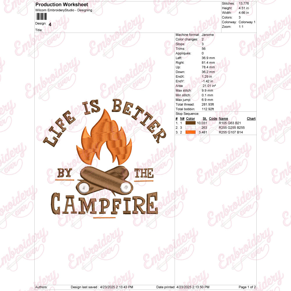 Let your creativity shine with this delightful Life Is Better By The Campfire embroidery design!