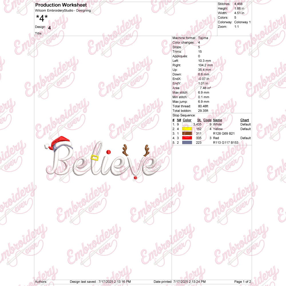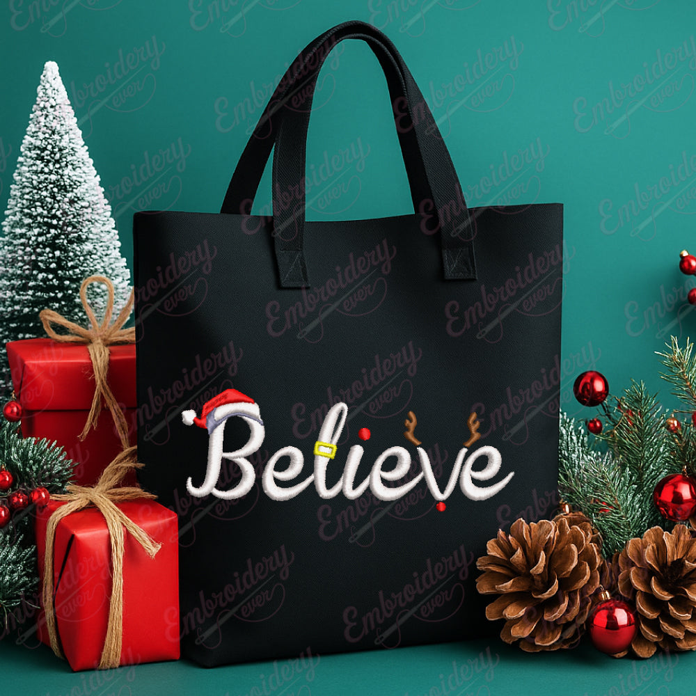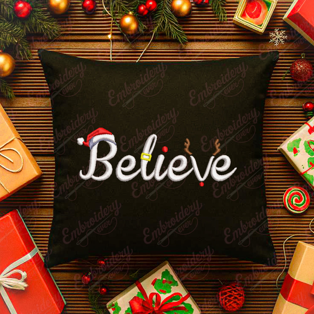 Let your creativity shine with this delightful Believe Christmas embroidery design!