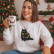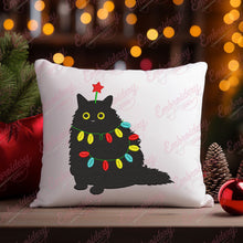 Black Cat with Christmas Lights Digital Download Machine Embroidery Design