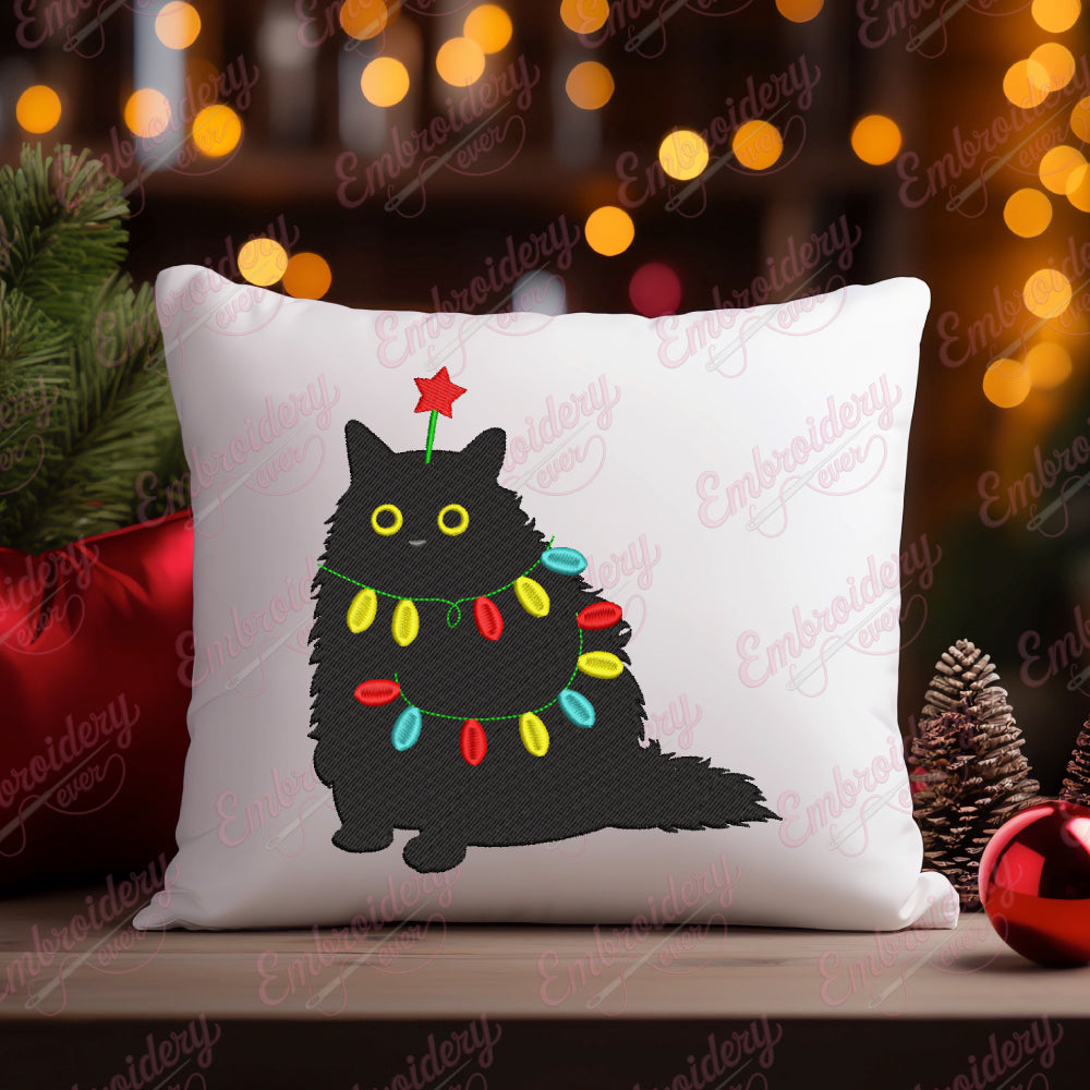 Let your creativity shine with this delightful Black Cat with Christmas Lights embroidery design!