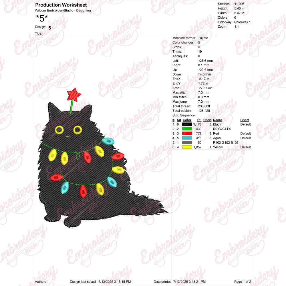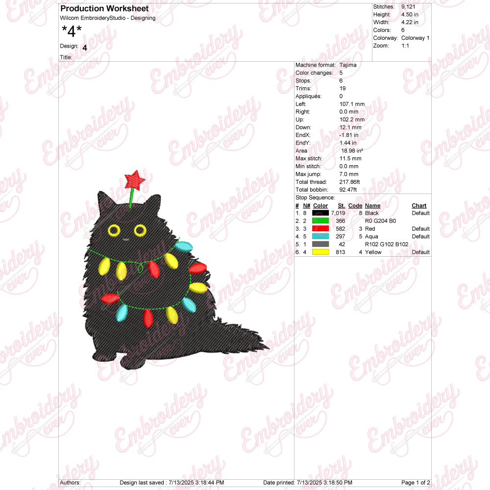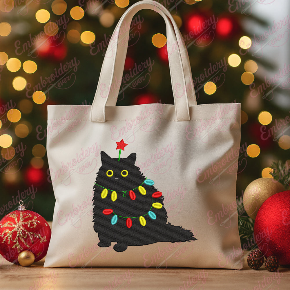 Celebrate the festive season with the Black Cat with Christmas Lights Embroidery Design, a sophisticated and charming pattern that combines holiday spirit with a touch of whimsy. This design features a sleek black cat playfully entwined in vibrant Christmas lights, capturing both the mystery of the feline and the joyful glow of holiday decorations. Ideal for embellishing apparel, home textiles, or gift items, the detailed stitching brings depth and texture to every outline and light bulb. Perfect for experienced embroiderers seeking a seasonal project that blends elegance with fun, this design elevates your creations with festive cheer and artistic flair.