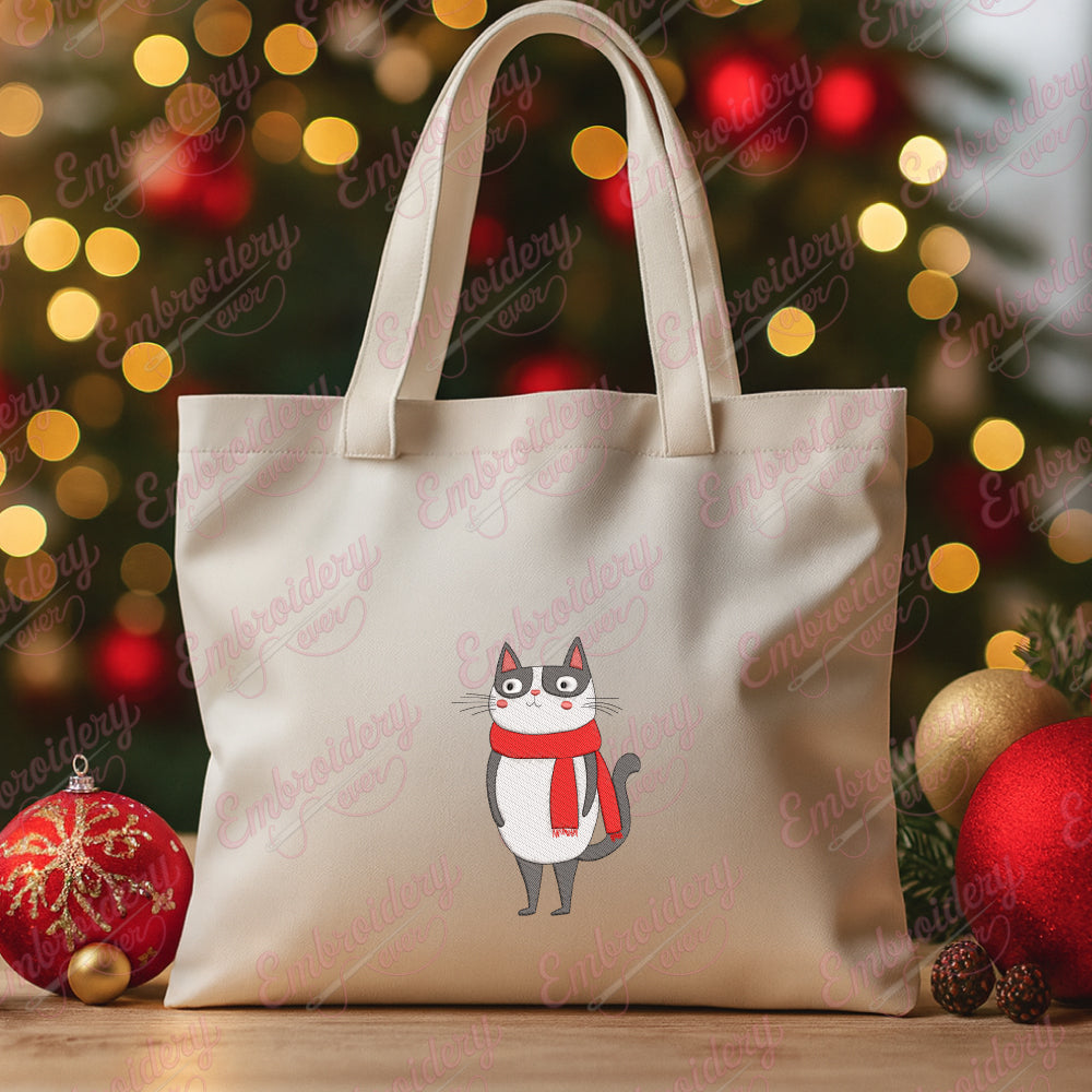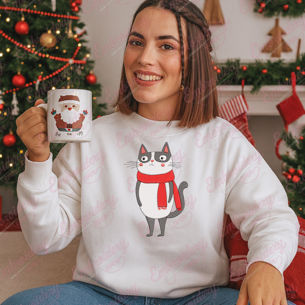 Let your creativity shine with this delightful Cat With Christmas Scarf embroidery design!