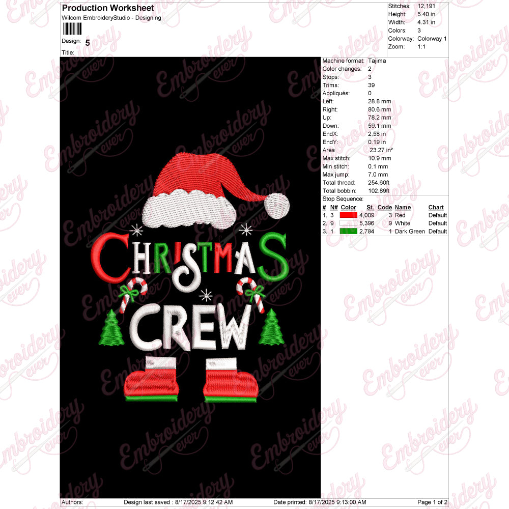 Let your creativity shine with this delightful Christmas Crew Santa embroidery design!