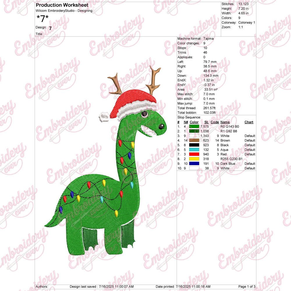 Celebrate the festive season with the Christmas Dinosaur Embroidery Design, a unique blend of whimsical charm and seasonal spirit. Expertly crafted, this design features a cheerful dinosaur adorned with classic holiday elements such as Santa hats, ornaments, or snowflakes, making it a standout addition to any embroidery project. Perfect for adding a playful touch to winter apparel, home décor, or personalized gifts, this design offers detailed stitching that enhances texture and depth. Compatible with various embroidery machines, it ensures smooth application on fabrics ranging from cotton to fleece. Bring joy and creativity to your holiday crafting with this exclusive embroidery design that captures both nostalgia and festive cheer.