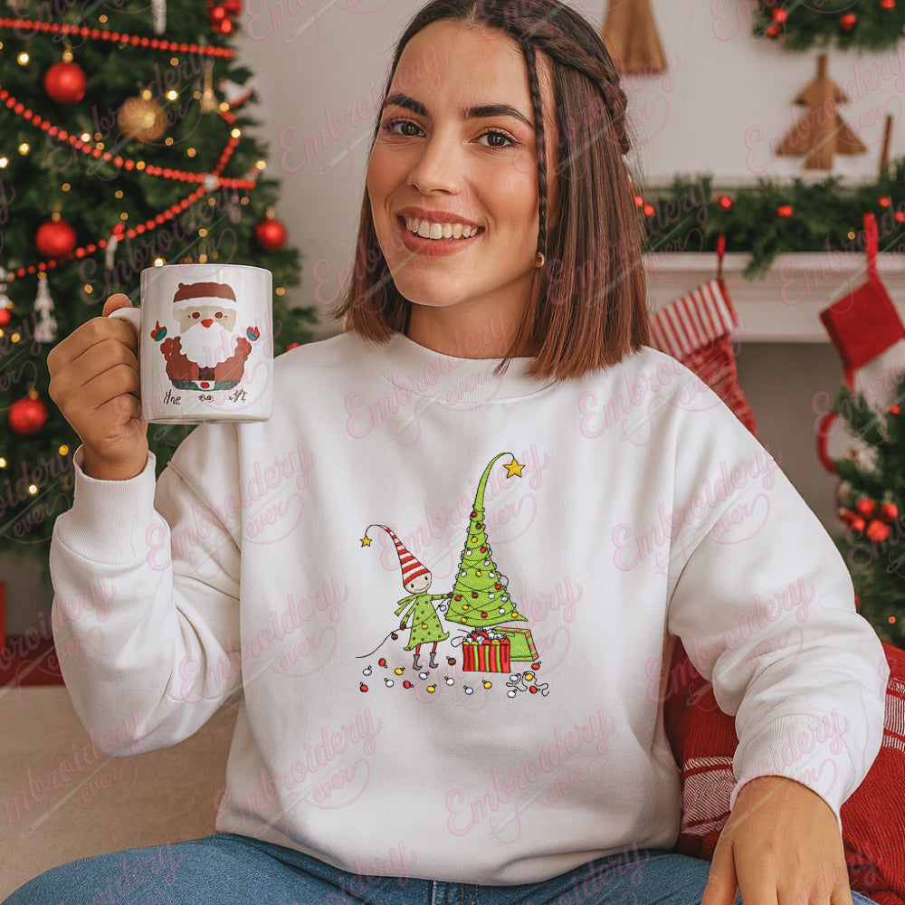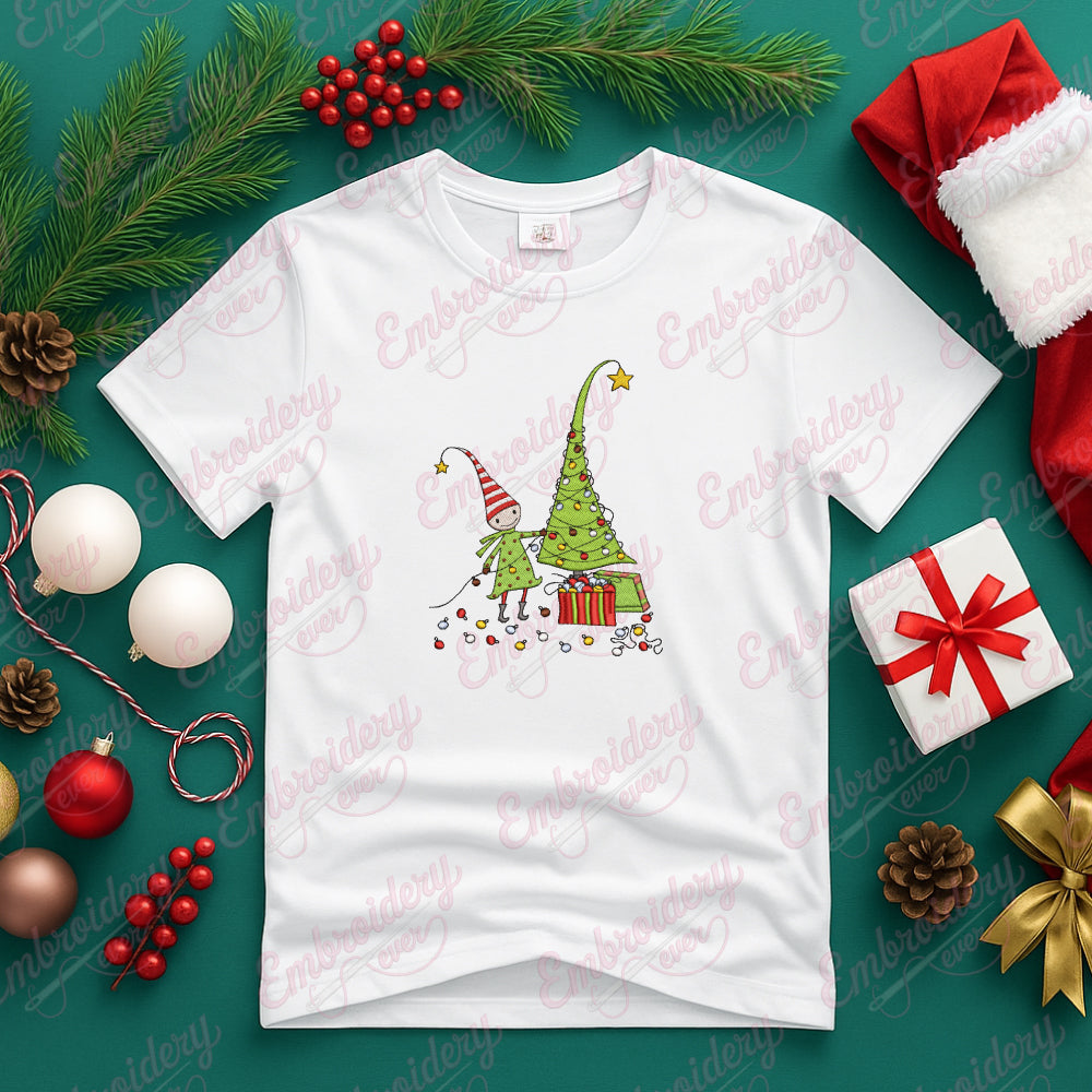 Christmas Elf Decorating Tree Digital Download Machine Embroidery Design