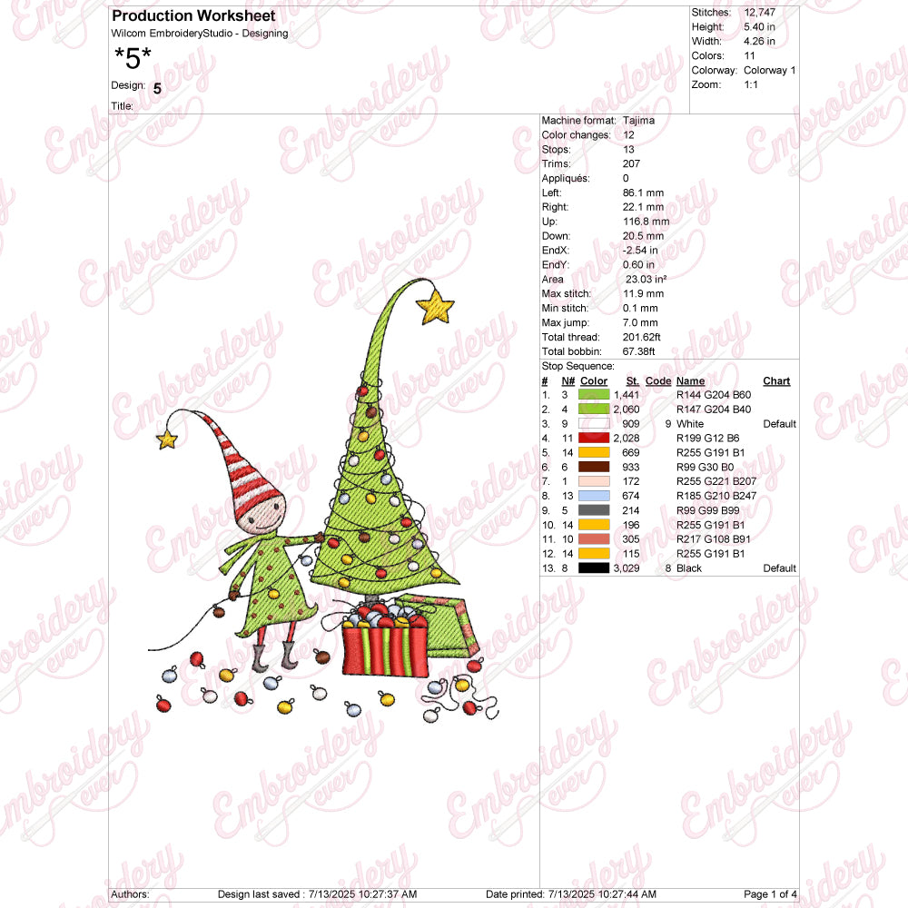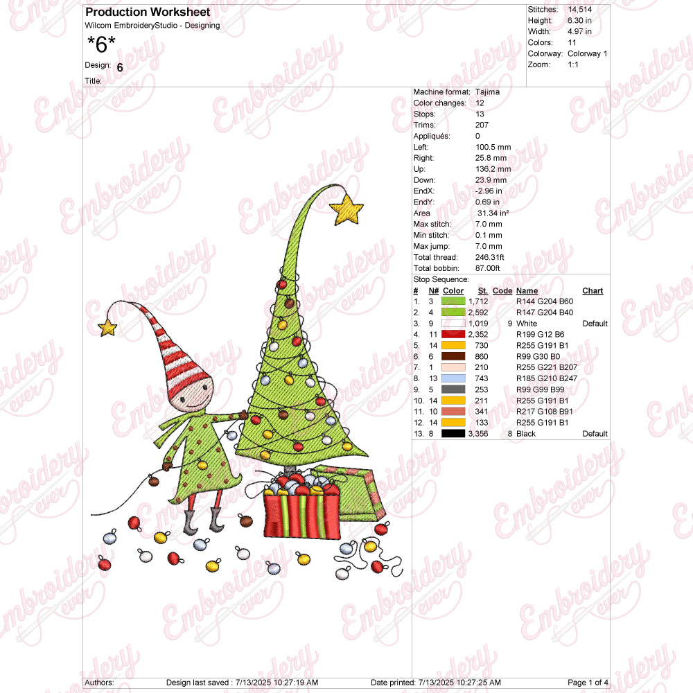 Let your creativity shine with this delightful Christmas Elf Decorating Tree embroidery design!