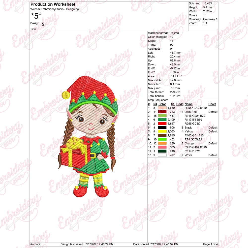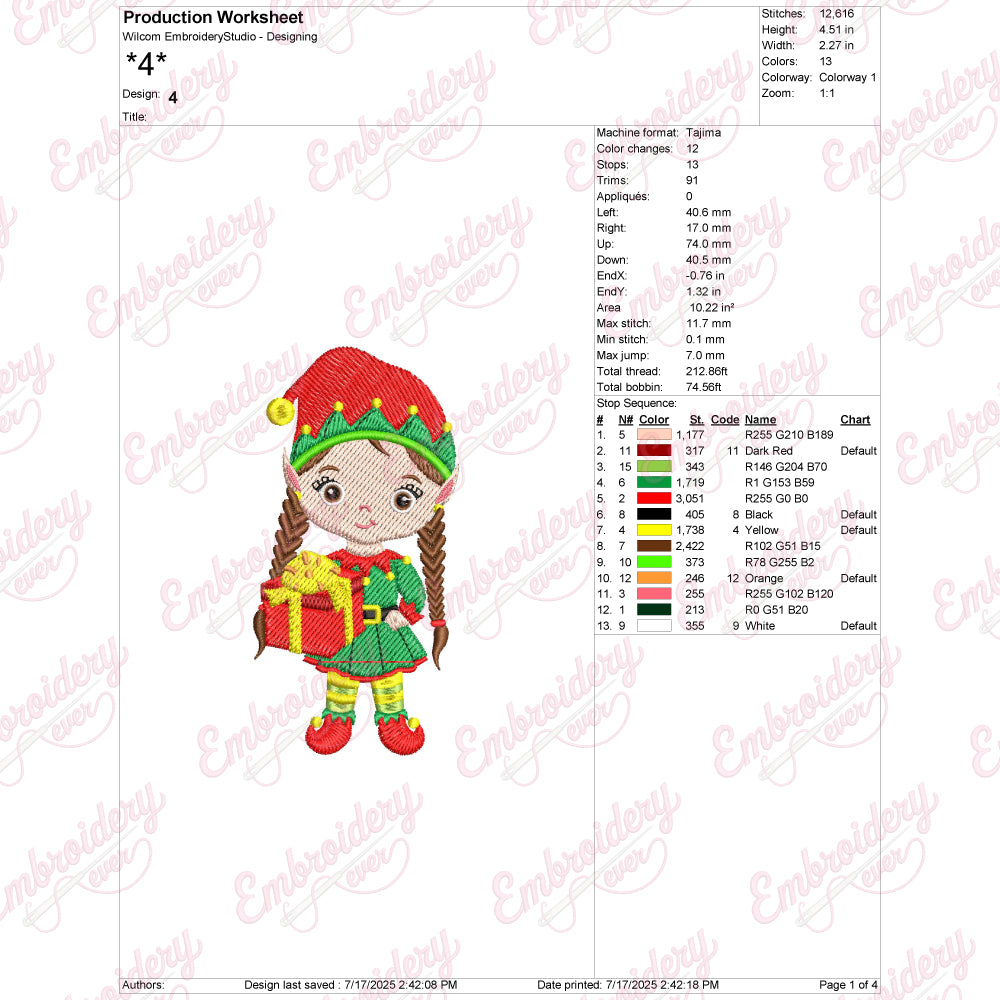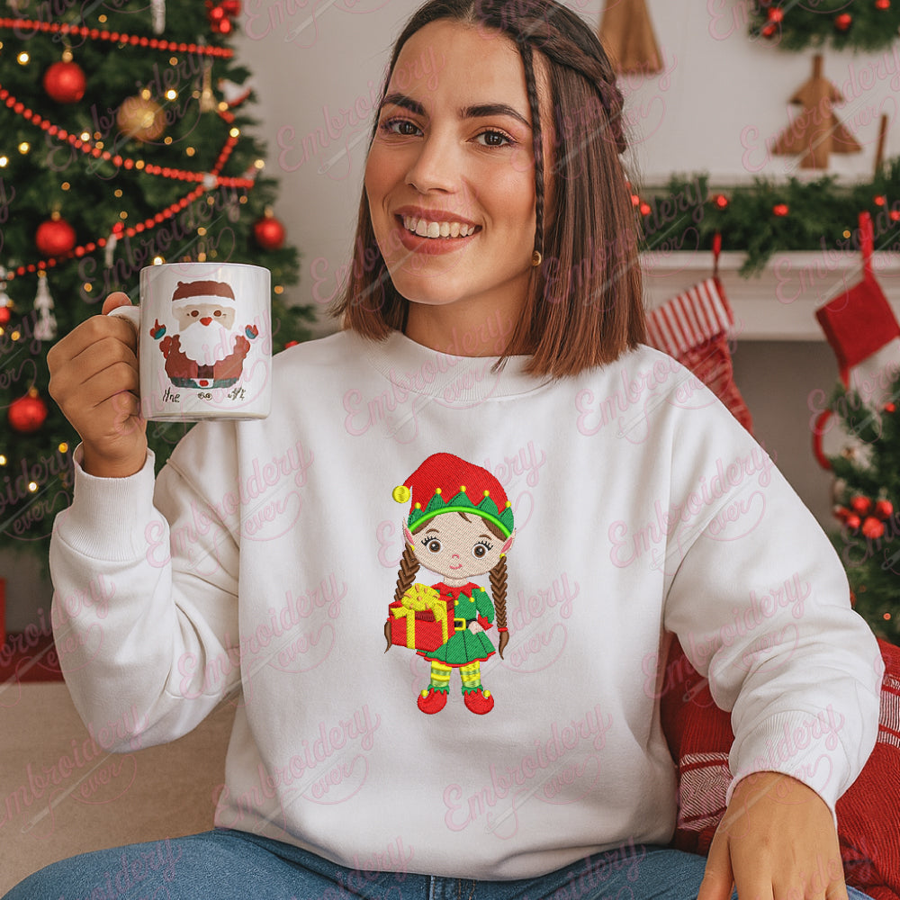 Celebrate the festive spirit with the Christmas Elf Girl With Gift Embroidery Design, a detailed and charming pattern perfect for adding holiday cheer to any fabric project. This design features a delightful elf girl holding a beautifully wrapped gift, capturing the joy and magic of the Christmas season. Crafted with precise stitching instructions, it ensures clean lines and vibrant colors that bring the character to life with a professional finish. Ideal for embellishing garments, home décor items, or gifts, this embroidery design enhances seasonal creativity while delivering a high-quality, durable result. Its timeless holiday theme makes it a versatile choice for expert embroiderers seeking to create standout festive pieces.
