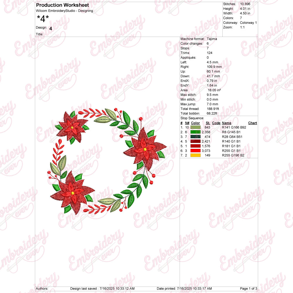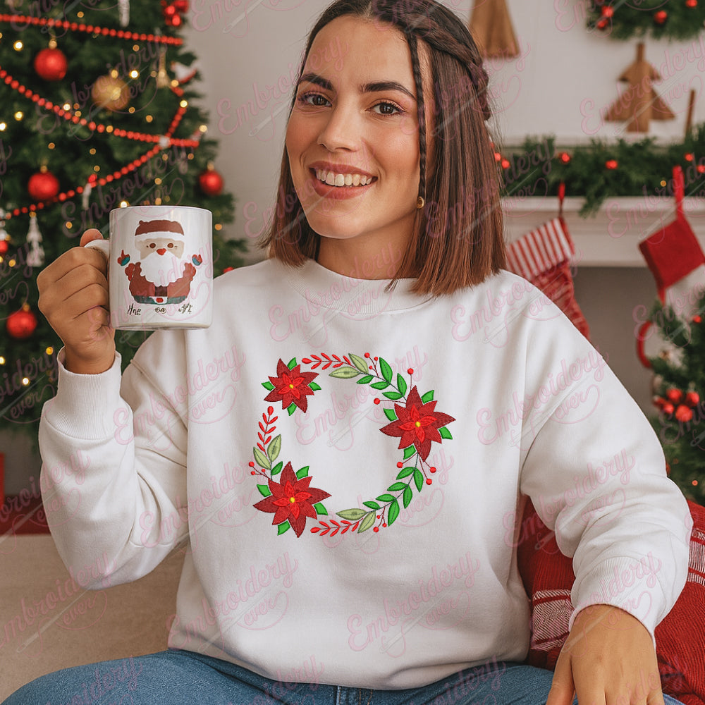 The Christmas Flower Wreath Embroidery Design offers a detailed and festive motif perfect for holiday projects. Featuring a harmonious arrangement of classic Christmas blooms, including poinsettias, holly leaves, and delicate berries, this design brings seasonal charm to any fabric. Expertly crafted with intricate stitching patterns, it ensures a rich texture and vibrant look when embroidered. Ideal for decorating garments, home textiles, or holiday gifts, this design adds a timeless, handcrafted elegance that enhances your creative work. Its balanced composition and carefully selected elements reflect the traditional holiday spirit, making it a valuable addition to your embroidery collection.