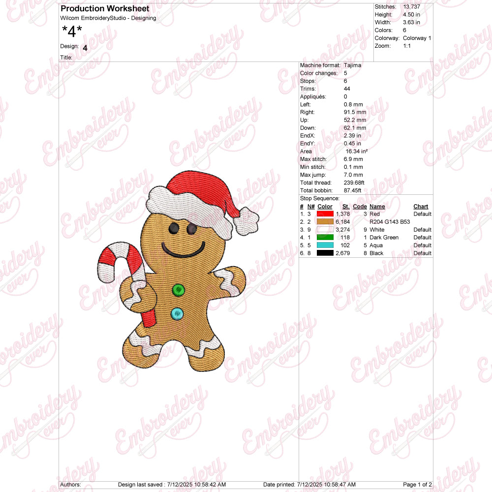 The Christmas Gingerbread Man Embroidery Design captures the festive spirit with intricate detail and professional craftsmanship. This design features a charming gingerbread man adorned with classic holiday decorations like icing swirls, buttons, and a cheerful smile, making it perfect for adding a warm, seasonal touch to fabric projects. Expertly digitized to ensure smooth stitching and vibrant texture, it is compatible with most embroidery machines and suitable for a variety of materials such as cotton, linen, and felt. Ideal for creating custom holiday gifts, apparel, or home décor, this design brings a timeless Christmas motif to life with precision and elegance.