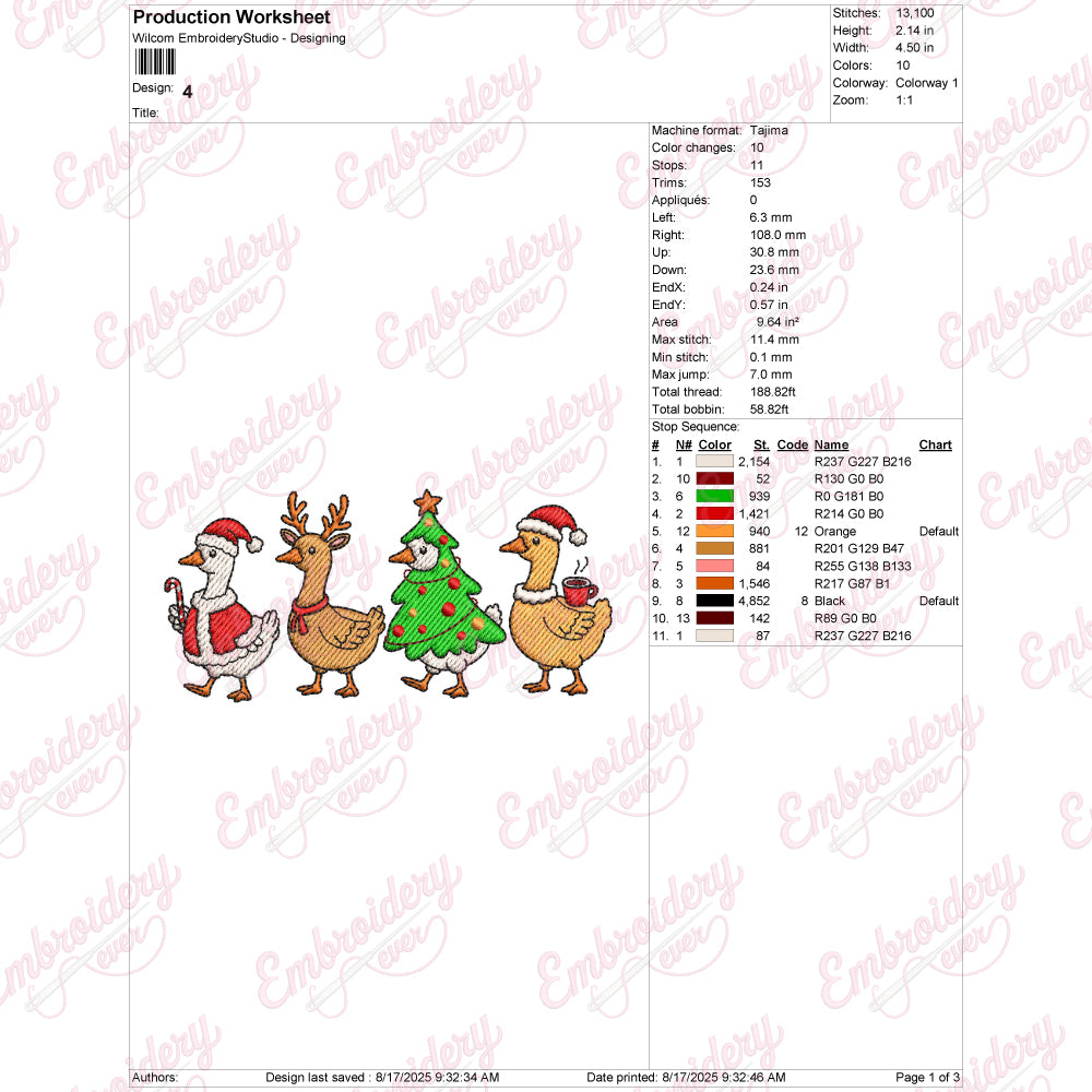 Let your creativity shine with this delightful Christmas Goose Squad embroidery design!