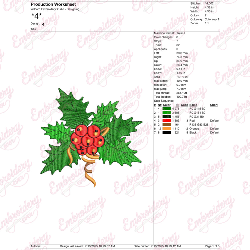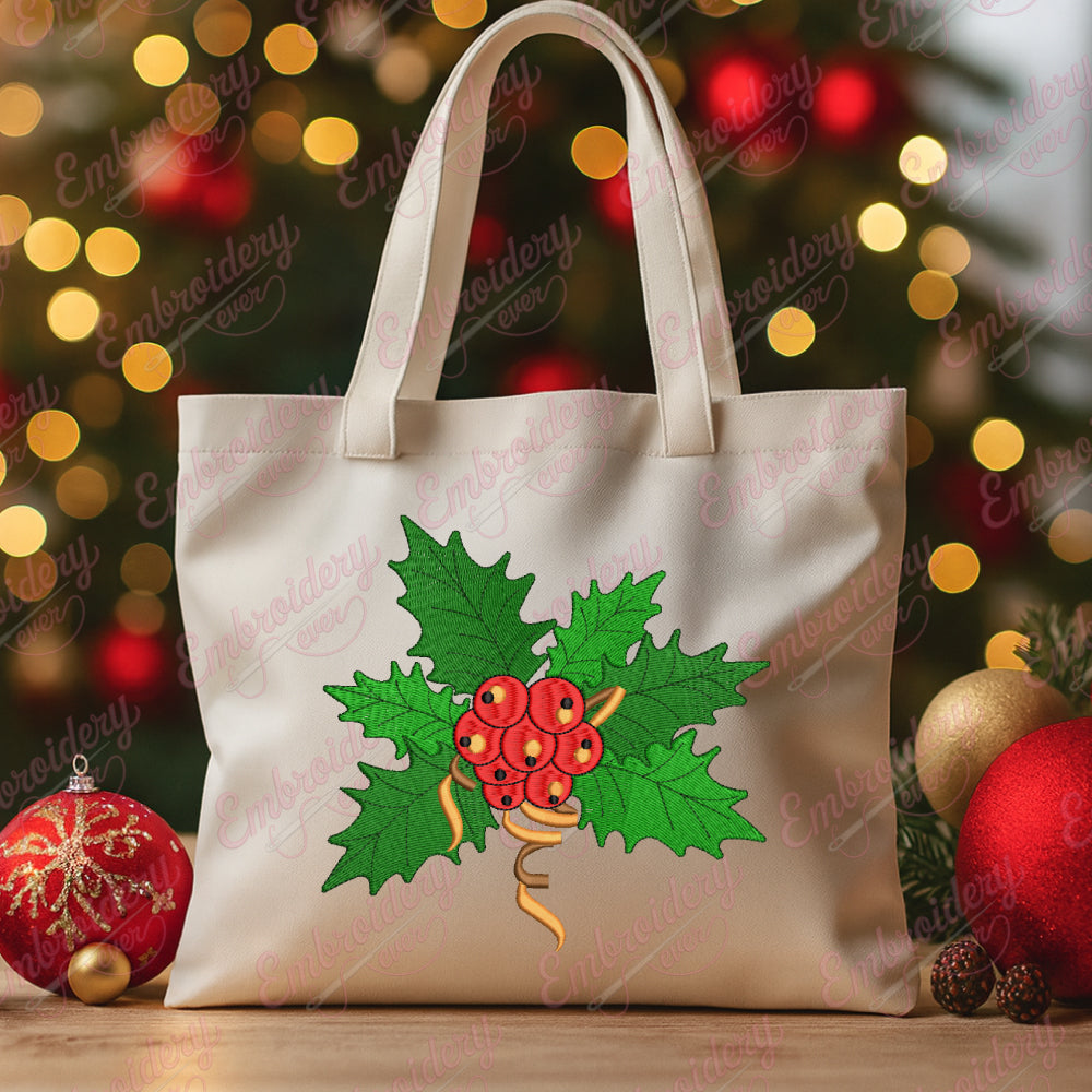 Let your creativity shine with this delightful Christmas Holly Leaves embroidery design!
