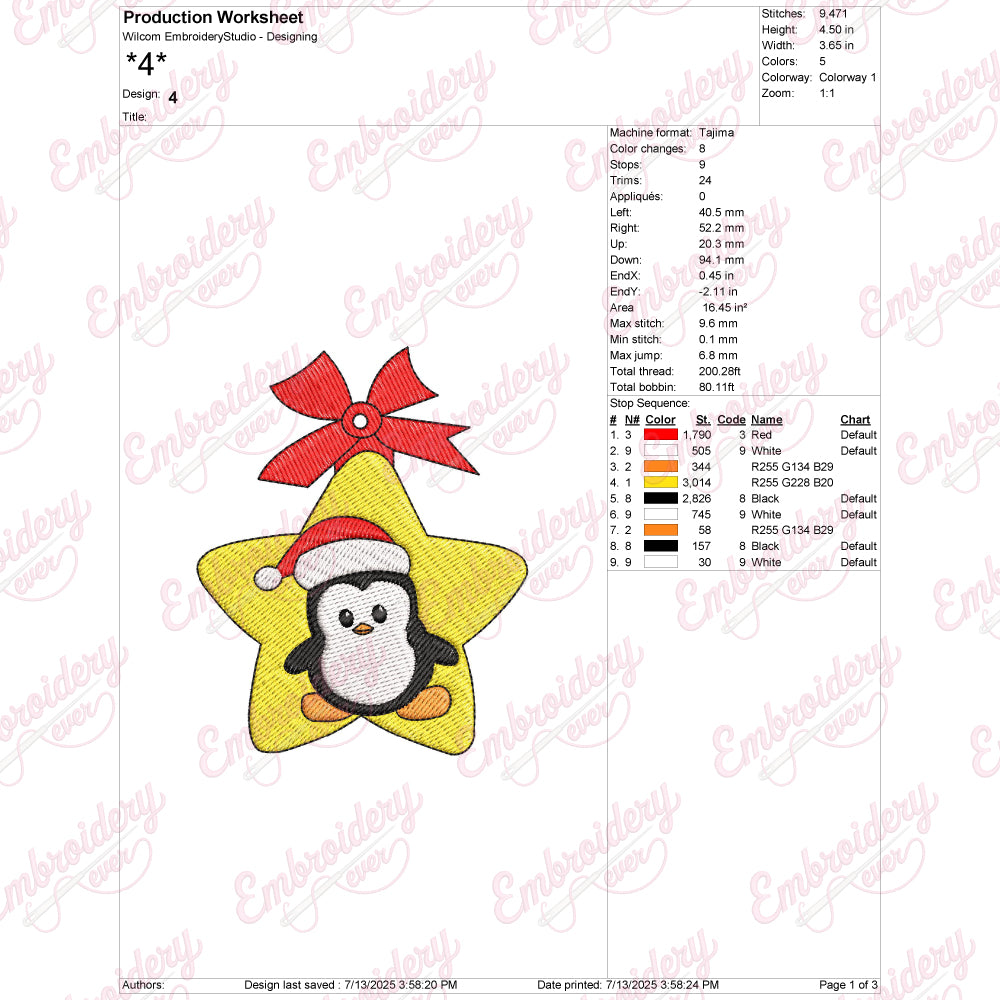 Celebrate the festive season with the Christmas Penguin On Star Machine Embroidery Design, a detailed and charming addition to your holiday projects. This expertly crafted design features a playful penguin perched atop a star, embodying the joy and warmth of Christmas. Ideal for embellishing garments, home decor, or gift items, the design integrates fine stitch work to ensure clarity and durability. Compatible with most embroidery machines, it allows for precise stitching and vibrant thread color options. Elevate your holiday creations with this unique design that combines seasonal spirit with professional craftsmanship, perfect for adding a personalized touch to your festive crafts.