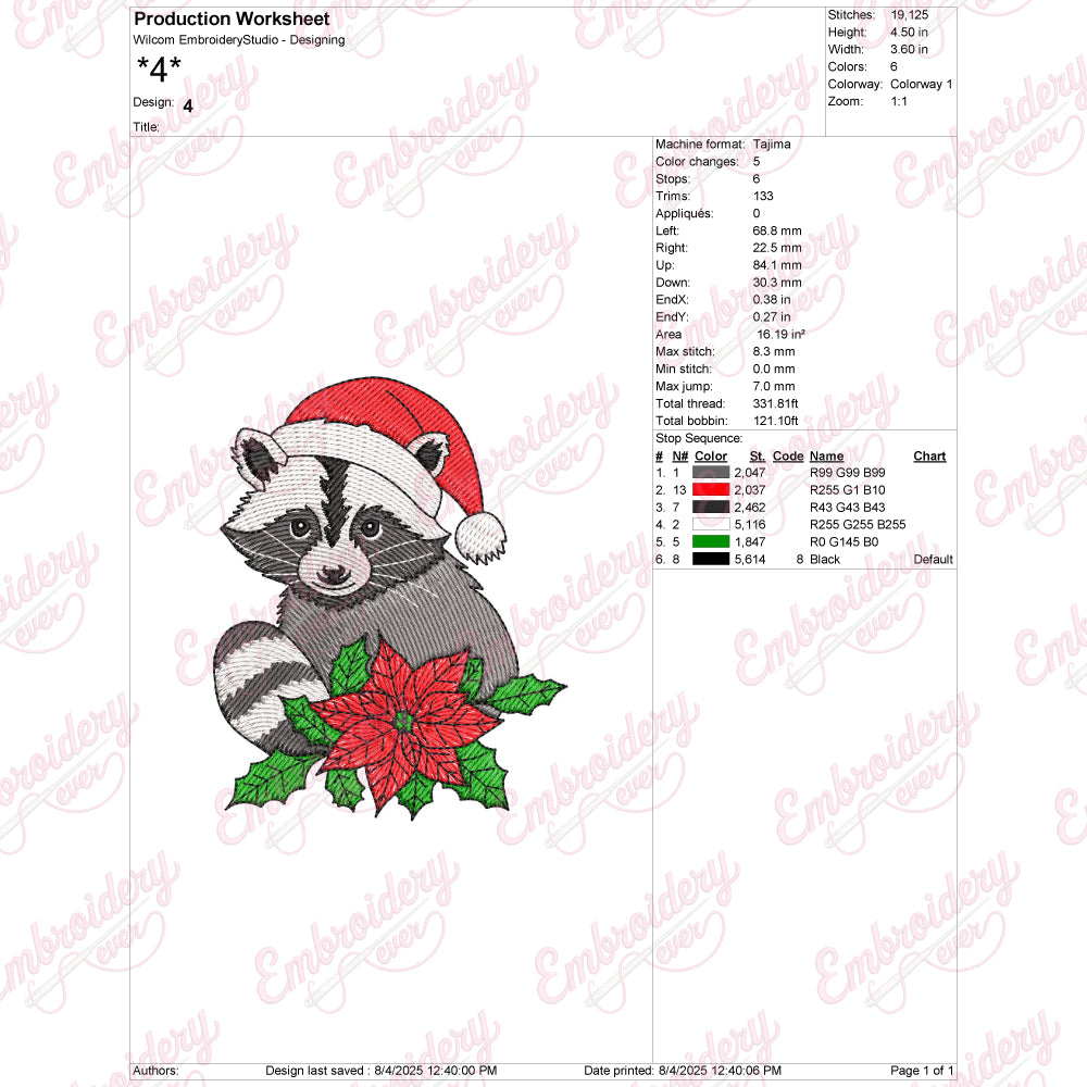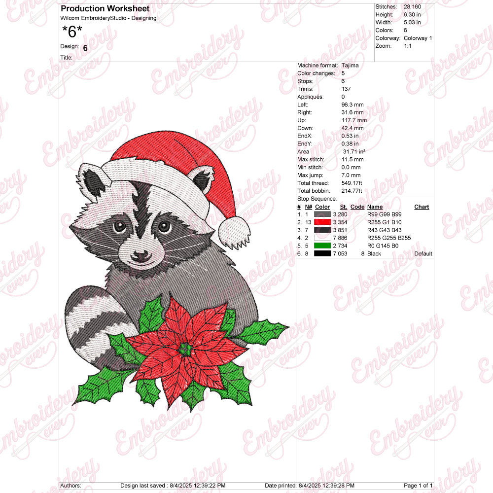 Let your creativity shine with this delightful Christmas Raccoon In Santa Hat embroidery design!