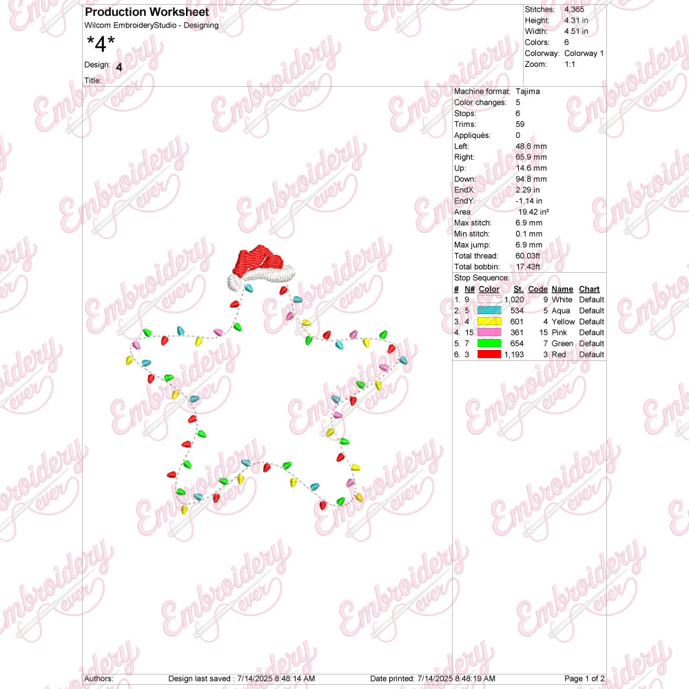 The Christmas Star Outline Embroidery Design captures the timeless elegance of the holiday season with a clean, minimalist star motif. Perfect for adding a subtle yet festive touch to garments, linens, or home décor, this design features crisp, precise lines that highlight expert craftsmanship. Its versatile outline style allows for easy customization, making it suitable for a range of fabrics and embroidery techniques. Ideal for enhancing stockings, tree skirts, or holiday tablecloths, it brings a refined, sparkling accent without overwhelming the overall look. This design balances simplicity and sophistication, making it a valuable addition for any embroidery enthusiast seeking to create seasonal projects with professional appeal.