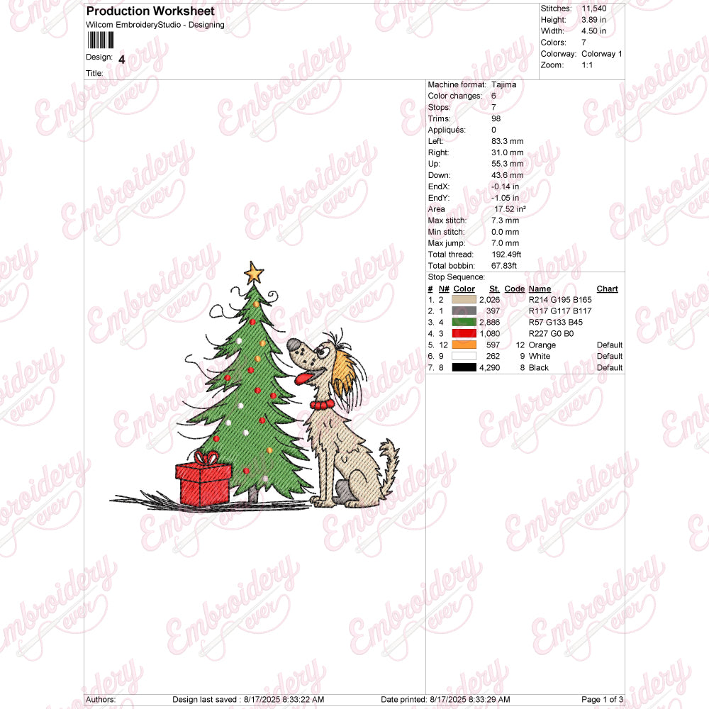 Christmas Tree Time With Max Digital Download Machine Embroidery Design