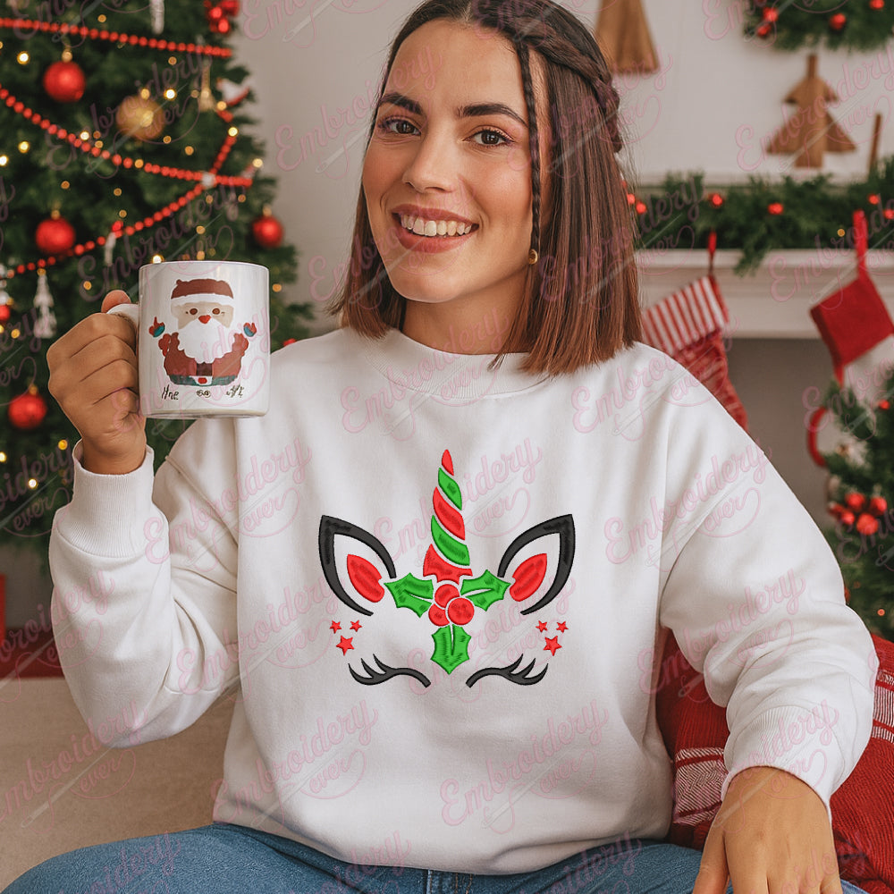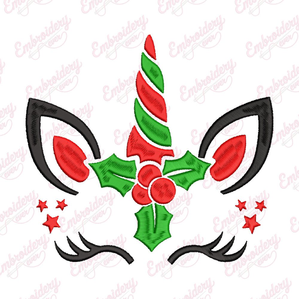 Christmas Unicorn Face Digital Download Machine Embroidery Design