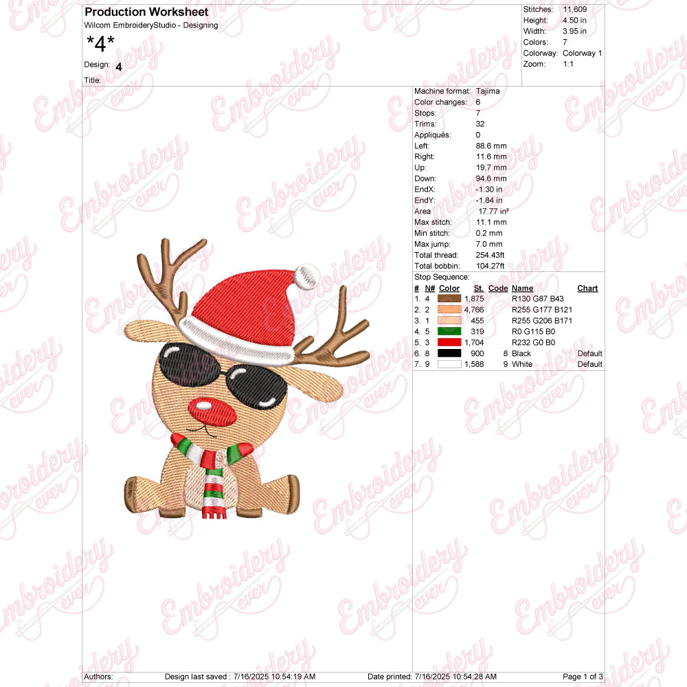 Let your creativity shine with this delightful Cool Christmas Reindeer embroidery design!