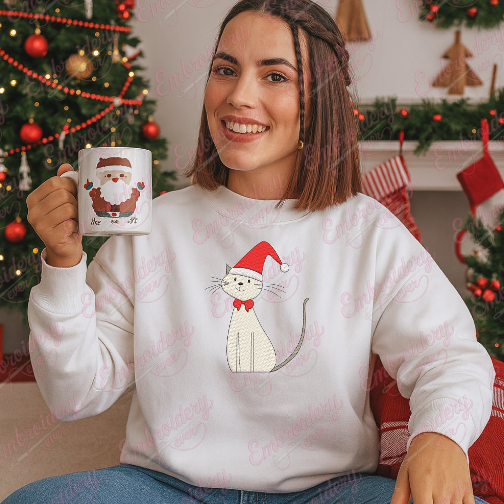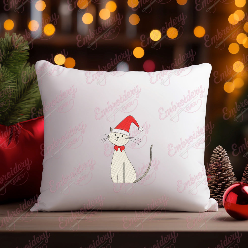 Cute Christmas Kitten Santa Hat Digital Download Machine Embroidery Design