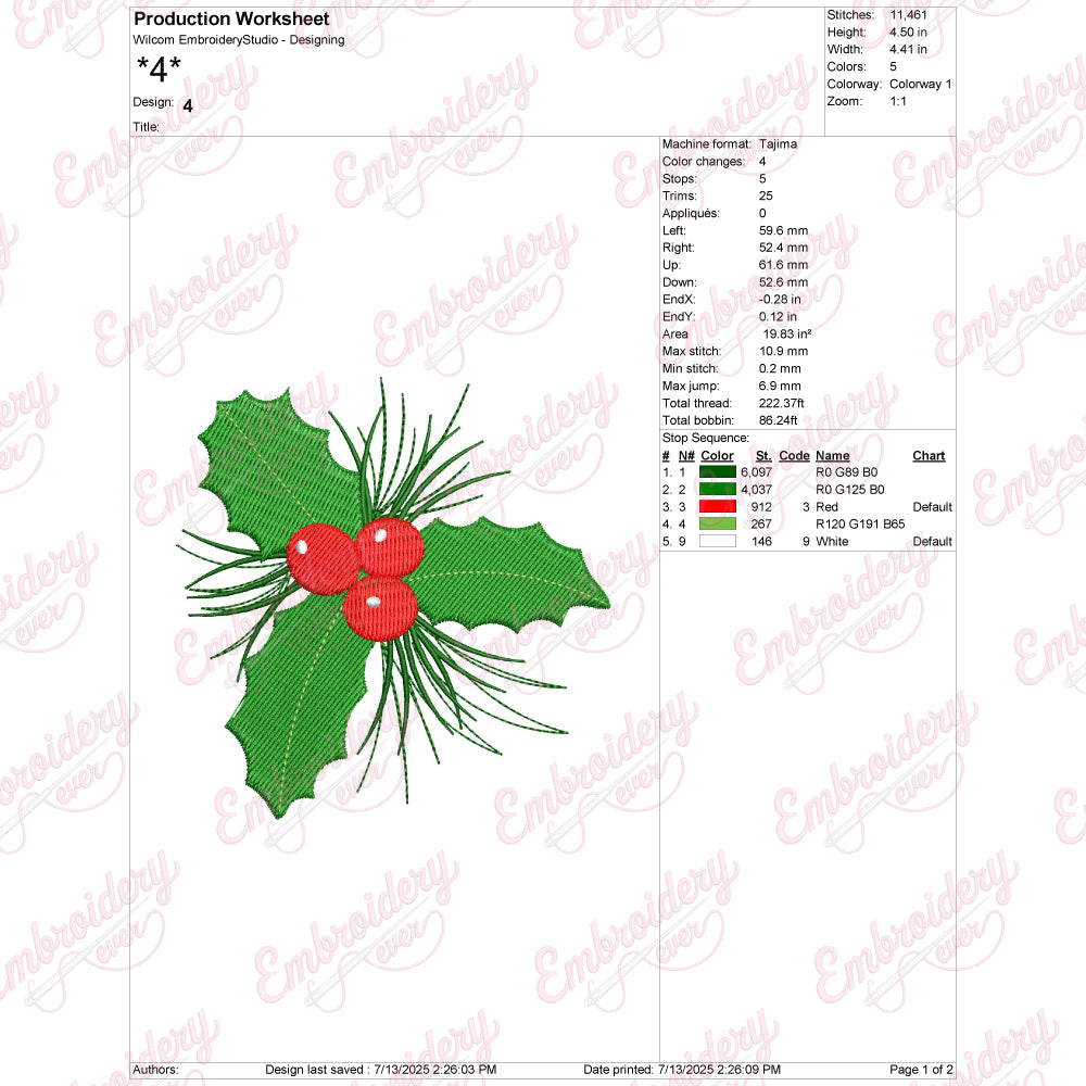 The Festive Berries Christmas Embroidery Design captures the essence of the holiday season with intricate detail and vibrant colors. This design features a carefully crafted arrangement of holly berries, leaves, and subtle accents that evoke a classic Christmas feel. Ideal for decorating garments, home linens, or festive gifts, it brings a sophisticated touch to your holiday projects. Crafted for precision, the embroidery ensures sharpness and clarity in every stitch, making it perfect for both hand and machine embroidery enthusiasts. With its timeless appeal, the Festive Berries design enhances seasonal creativity and adds an elegant festive charm to any fabric canvas.