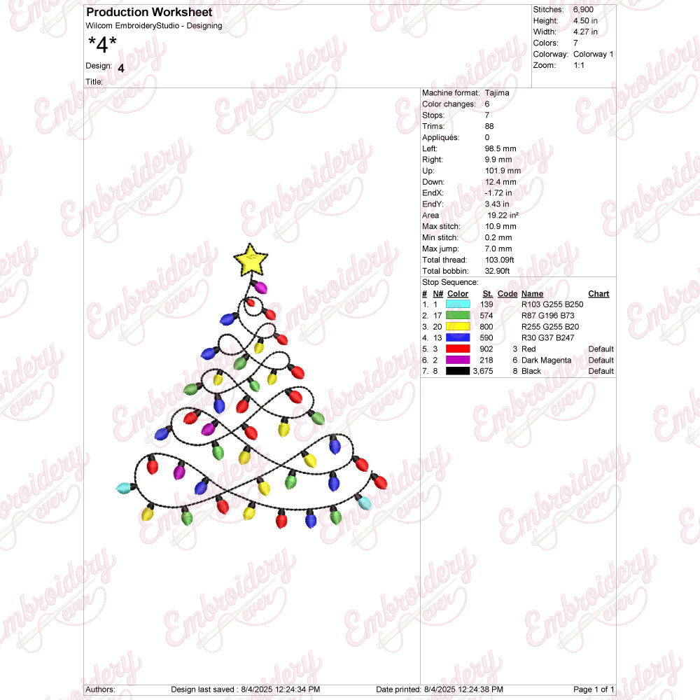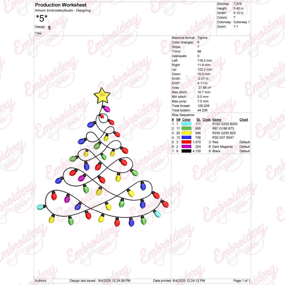 Let your creativity shine with this delightful Festive Christmas Tree Lights embroidery design!