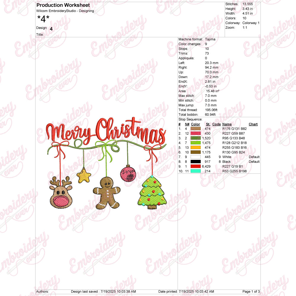 Celebrate the festive season with the Merry Christmas Decorations Embroidery Design, a meticulously crafted pattern perfect for adding a touch of holiday charm to your fabric projects. This design features classic Christmas motifs such as holly leaves, ornaments, and snowflakes, rendered with detailed stitching that brings each element to life. Ideal for enhancing garments, home décor, or personalized gifts, this embroidery pattern is compatible with a wide range of machines and fabrics. Its intricate craftsmanship ensures a polished, professional look that elevates any item with a warm and joyful seasonal spirit. Perfect for expert embroiderers seeking refined holiday aesthetics.