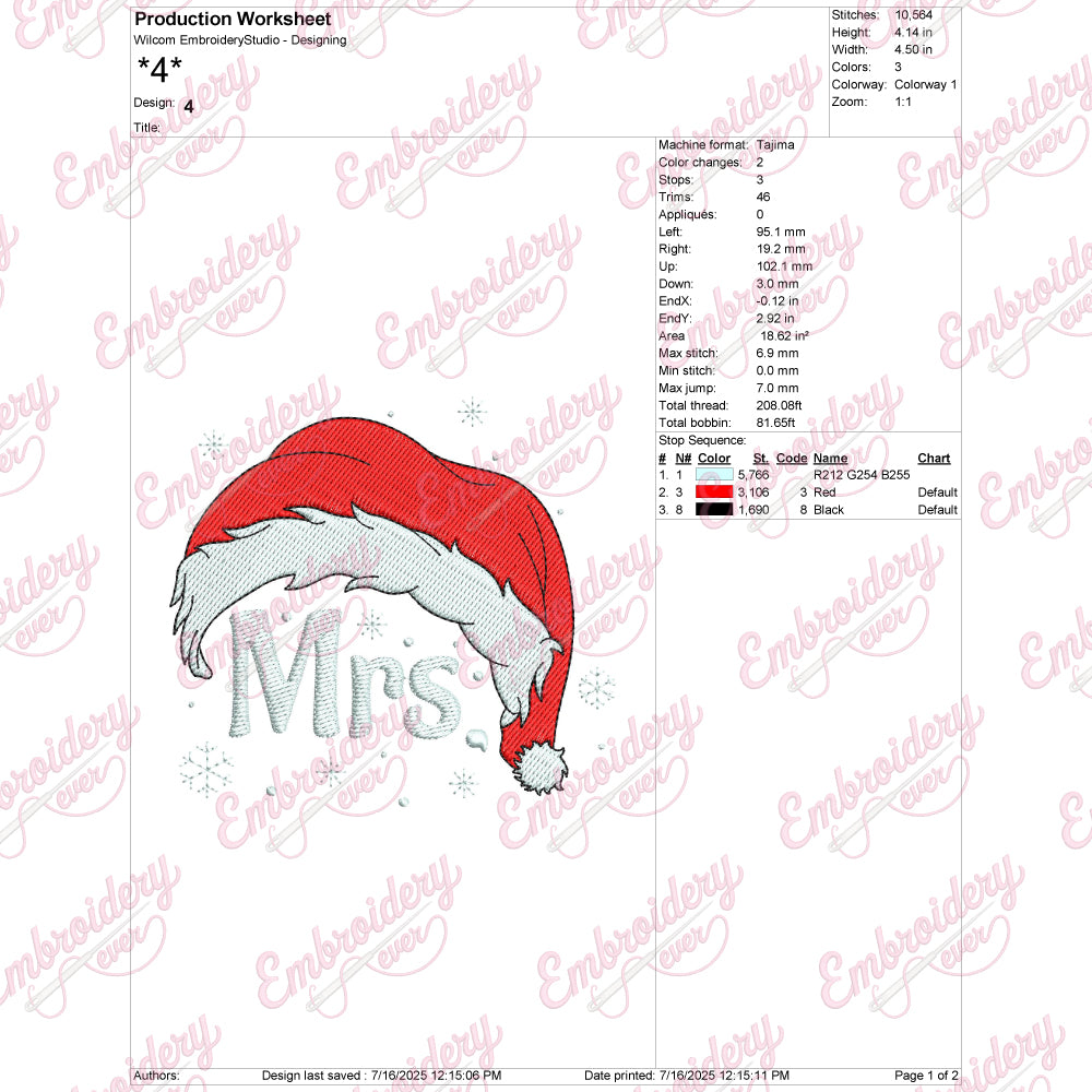 Merry Christmas Mrs. Claus Digital Download Machine Embroidery Design