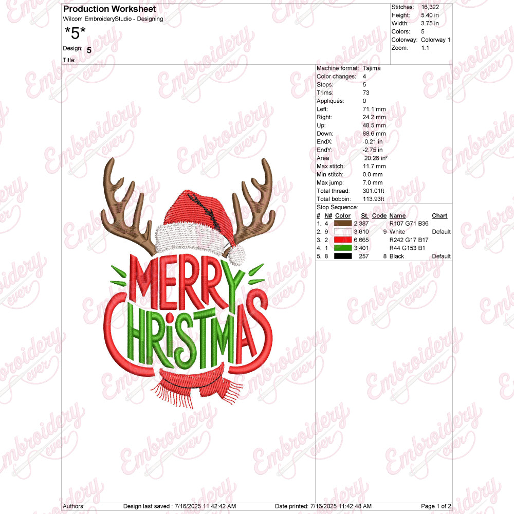 Let your creativity shine with this delightful Merry Christmas Reindeer Antlers embroidery design!
