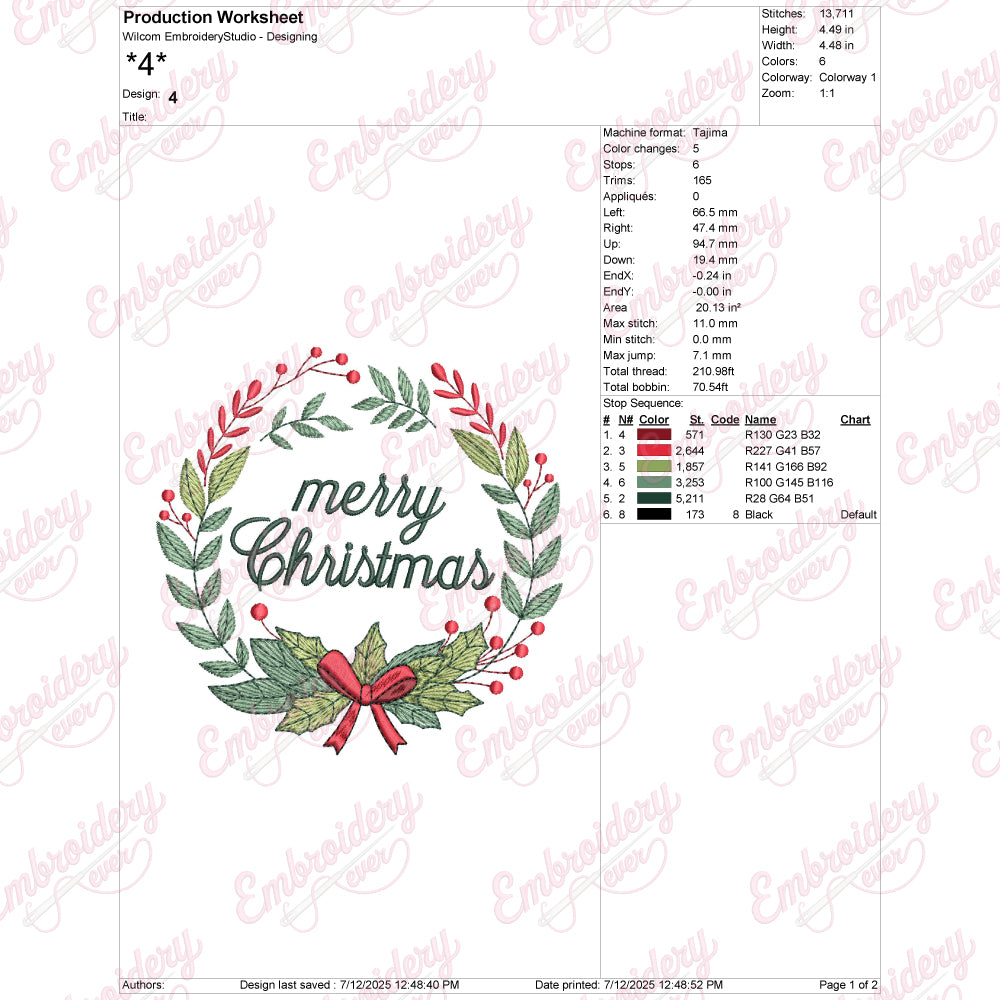 Celebrate the festive spirit with the Merry Christmas Wreath Embroidery Design, expertly crafted to bring a classic holiday charm to your projects. This detailed design features a beautifully arranged wreath adorned with holly leaves, berries, and subtle decorative accents, embodying the warmth and tradition of Christmas. Ideal for embellishing home décor, garments, or gift items, the design offers clean, precise stitching that enhances durability and appearance. Its versatile size and intricate details allow easy customization on various fabric types, making it perfect for both beginners and experienced embroiderers seeking to add a refined seasonal touch. Elevate your holiday creations with this timeless embroidery design.