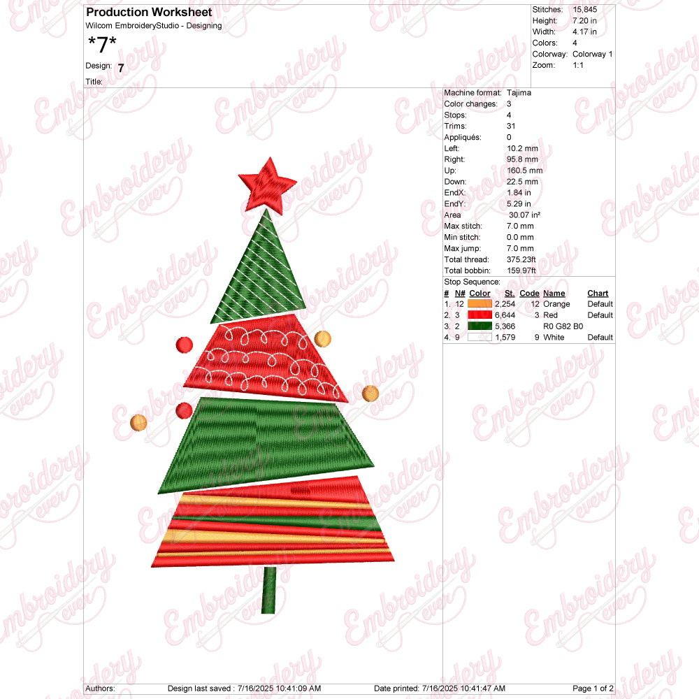 Let your creativity shine with this delightful Modern Christmas Tree embroidery design!