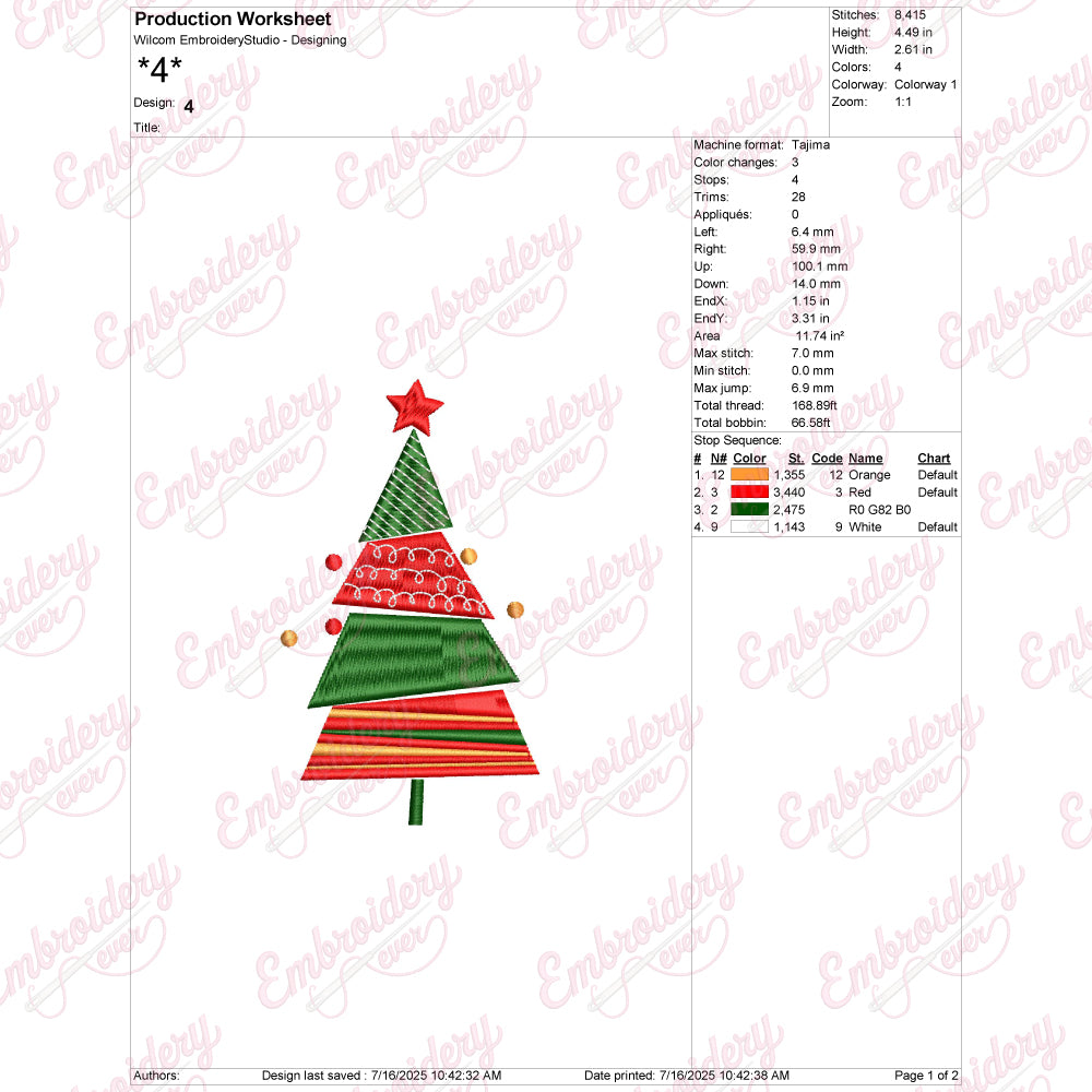 The Modern Christmas Tree Applique Embroidery Design offers a contemporary take on a beloved holiday symbol, perfect for adding festive charm to your sewing projects. Crafted with precise stitchwork, this design combines clean lines and geometric shapes that create a stylish, modern aesthetic. Ideal for decorating garments, home textiles, or holiday gifts, it uses applique techniques to provide texture and visual depth, elevating the overall look. This embroidery design is compatible with a variety of fabric types and embroidery machines, ensuring versatility and ease of use. Enhance your seasonal creations with this expert-level design that blends tradition with modern appeal.