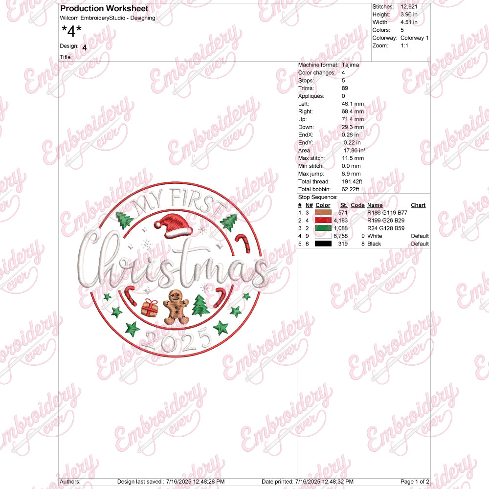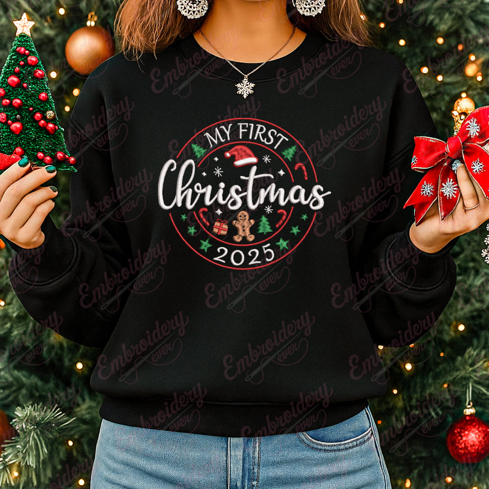 Let your creativity shine with this delightful My First Christmas 2025 embroidery design!