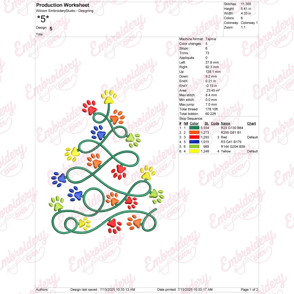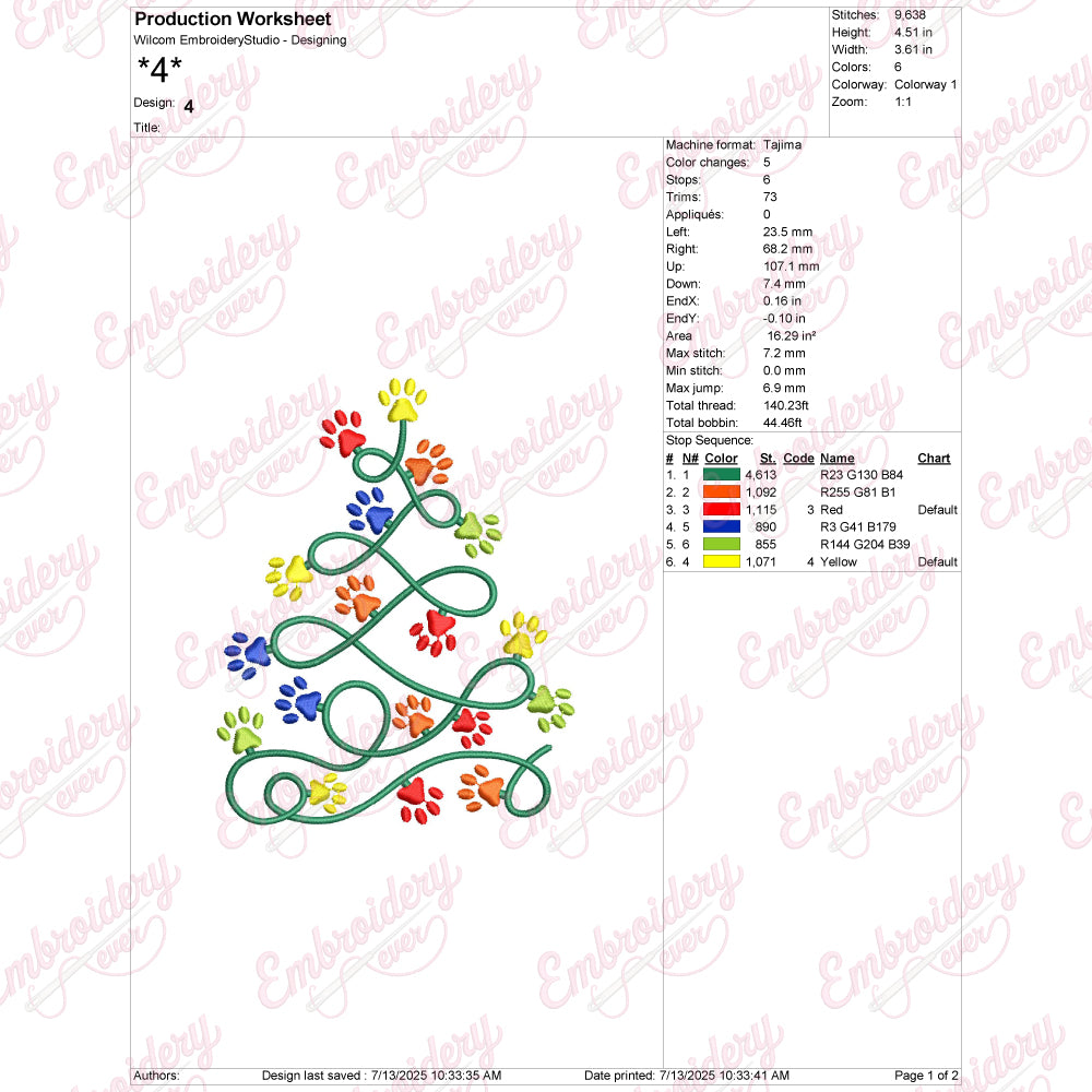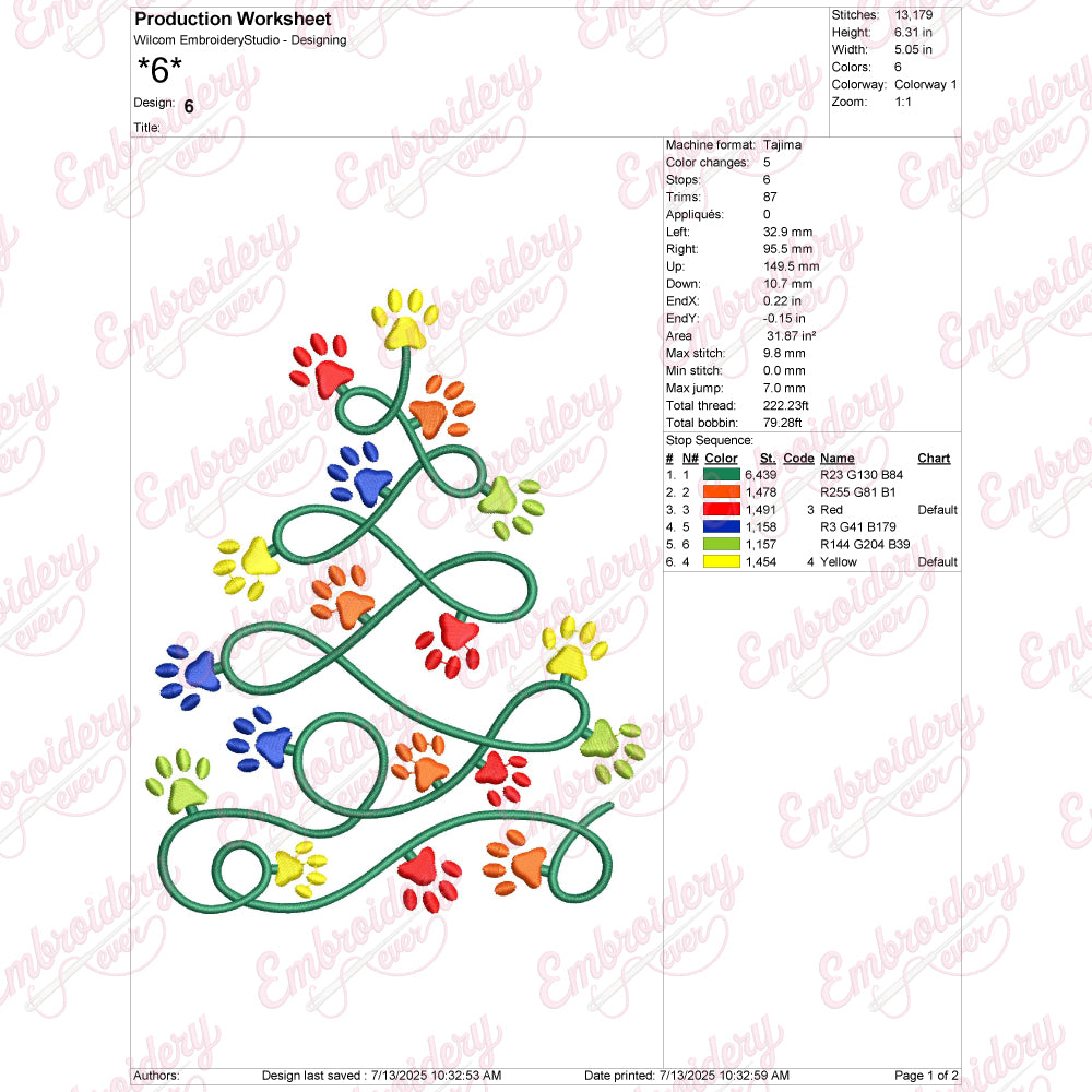 Let your creativity shine with this delightful Paw Print Christmas Tree embroidery design!
