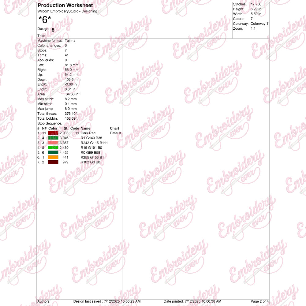 The Poinsettia Floral Christmas Embroidery Design captures the timeless elegance of the holiday season with intricate detail and expert craftsmanship. Featuring the classic poinsettia flower, this design uses finely detailed petals and rich textures to evoke the festive spirit. Perfect for enhancing holiday decor, garments, or gifts, it combines traditional charm with versatile application. The design's precise stitch patterns ensure durability and a refined finish, suitable for both experienced embroiderers and those seeking a professional-quality result. Its balanced composition and festive motif make it an ideal choice for adding a sophisticated seasonal touch to any embroidery project.
