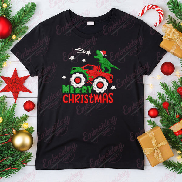 Christmas Dinosaur Riding Monster Truck Embroidery Design