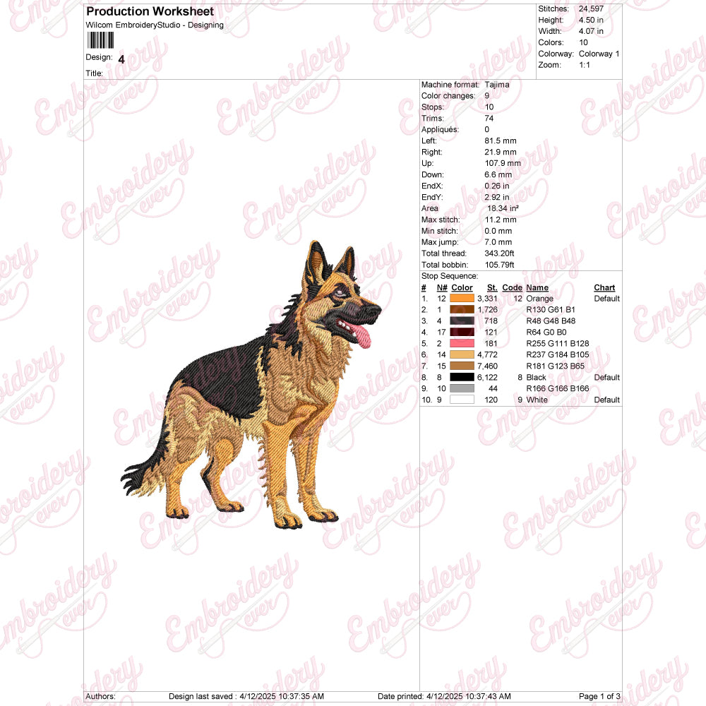 Let your creativity shine with this delightful German Shepherd embroidery design!
