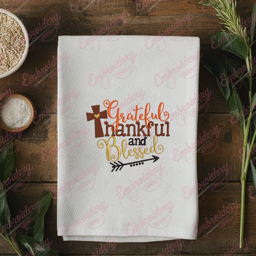 Let your creativity shine with this delightful Grateful Thankful And Blessed embroidery design!