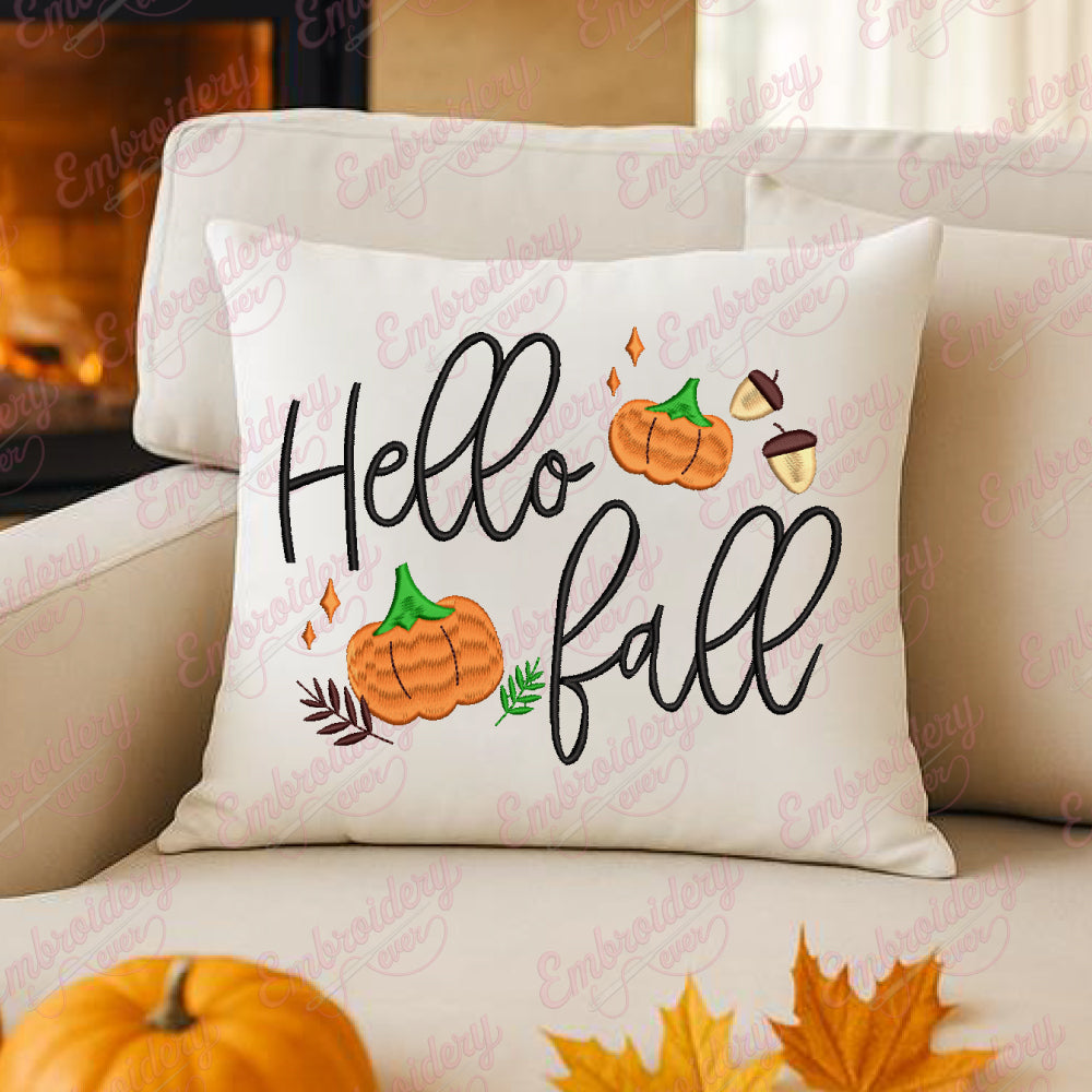 Let your creativity shine with this delightful Hello Fall embroidery design!