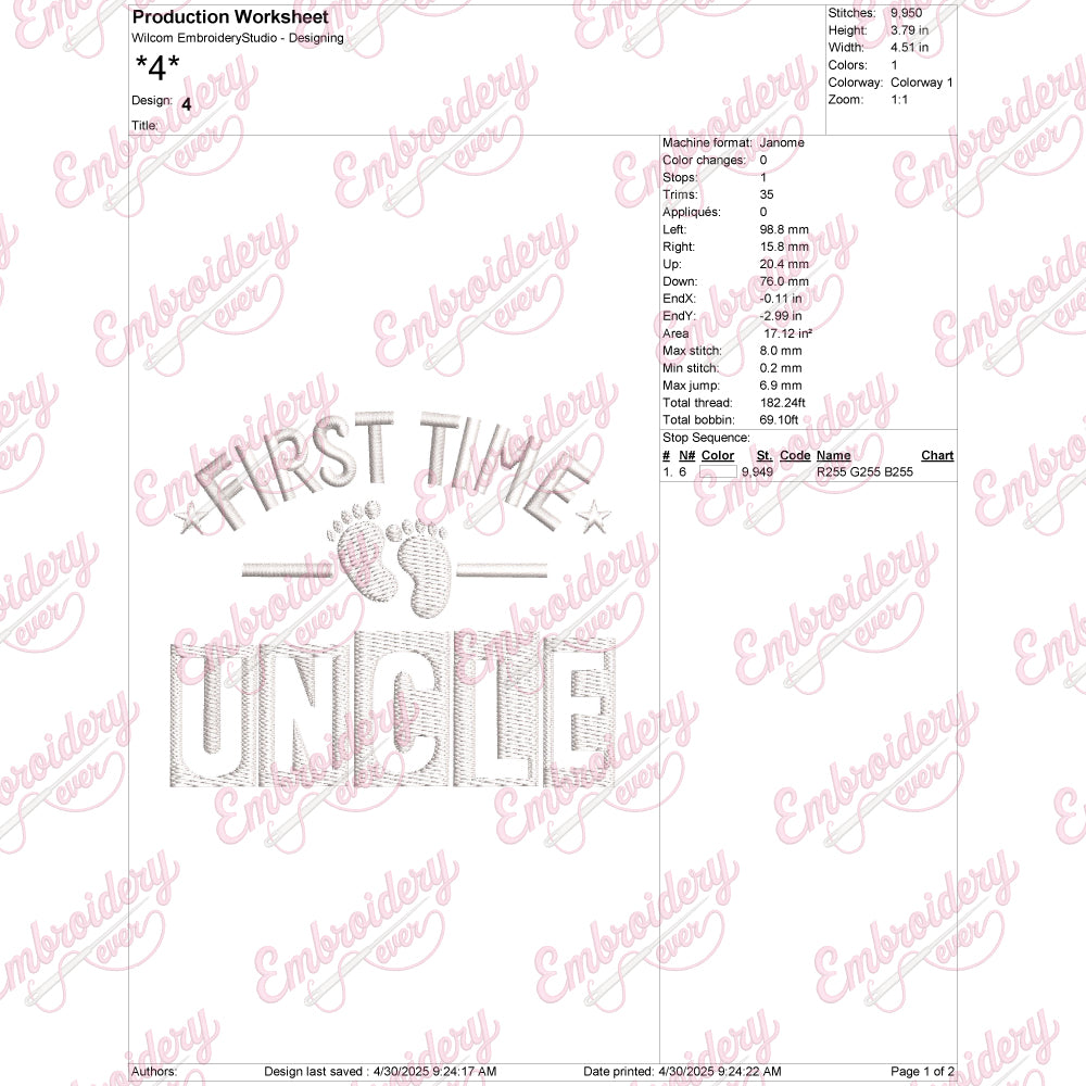 Let your creativity shine with this delightful First Time Uncle embroidery design!