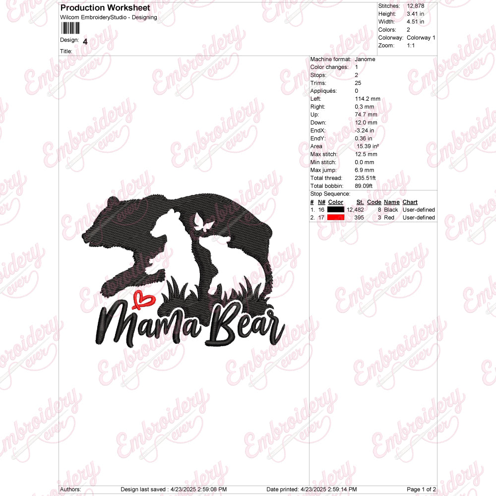 The Mama Bear Embroidery Design captures the protective and nurturing spirit symbolized by a mother bear. Expertly crafted with intricate stitching details, this design offers a perfect blend of strength and warmth, making it ideal for personalized gifts or home décor projects. Its detailed contours and textured elements bring the bear to life, showcasing both artistic precision and emotional depth. Suitable for a variety of fabric types, this embroidery design is versatile and easy to work with, ensuring a professional finish. Whether used on clothing, accessories, or quilts, the Mama Bear design adds a meaningful touch that resonates with family values and maternal care.