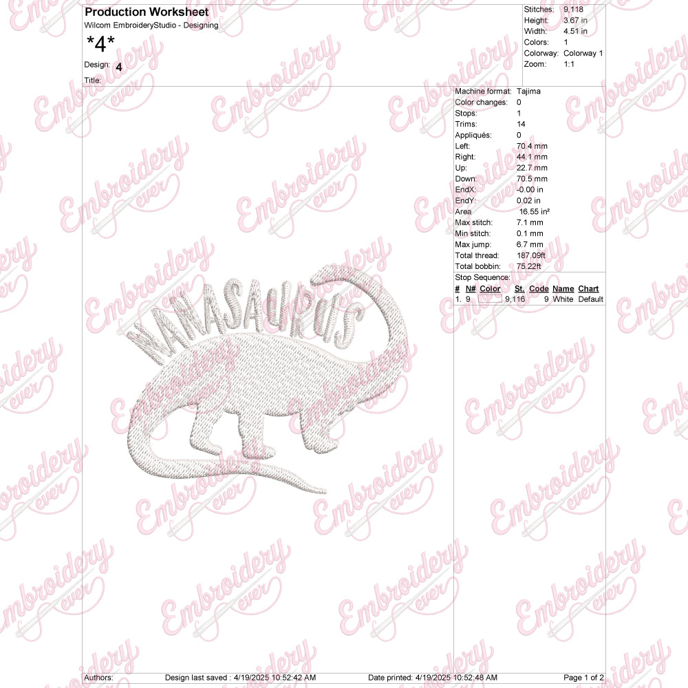 The Nanasaurus Funny Dinosaur Embroidery Design offers a playful and charming motif perfect for adding a touch of whimsy to any fabric project. Expertly crafted, this design features a delightful dinosaur character that combines humor with intricate stitching details, ensuring a visually appealing and durable finish. Ideal for embellishing clothing, accessories, or home textiles, the design brings personality and fun to your embroidery work. Its clear lines and balanced composition make it suitable for various embroidery machines and skill levels, providing consistent results. Whether for personal use or gifting, the Nanasaurus design enhances creativity with a unique, lighthearted flair.